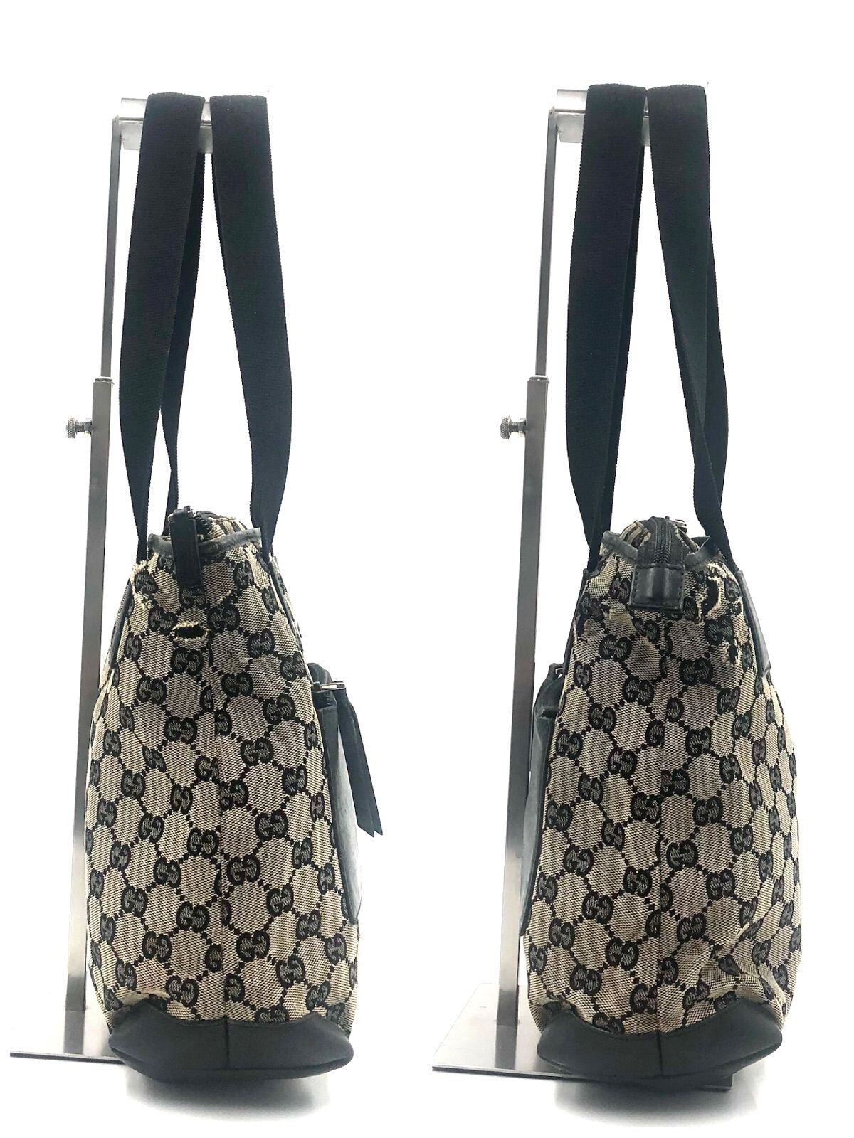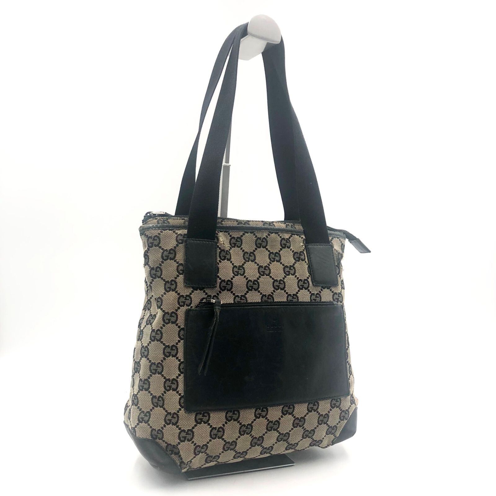 GUCCI グッチ GGキャンバス×レザー トートバッグ ブラック×グレージュ 前面レザーポケット イタリア製 刻印あり 019 0402 003754