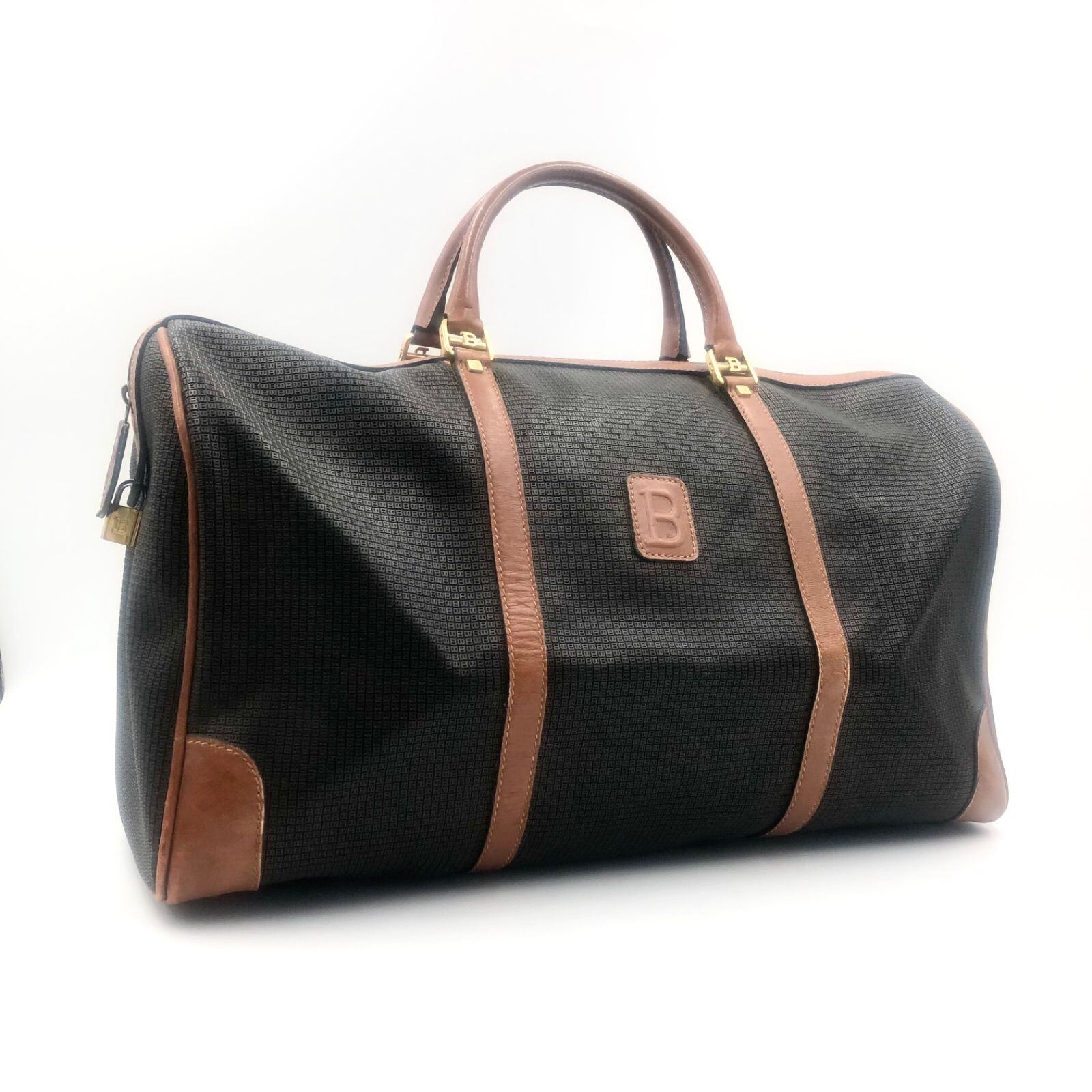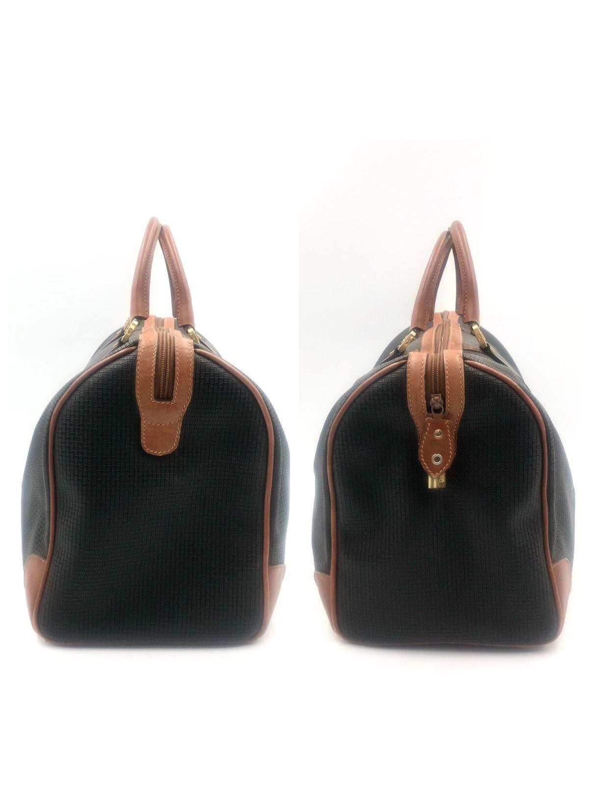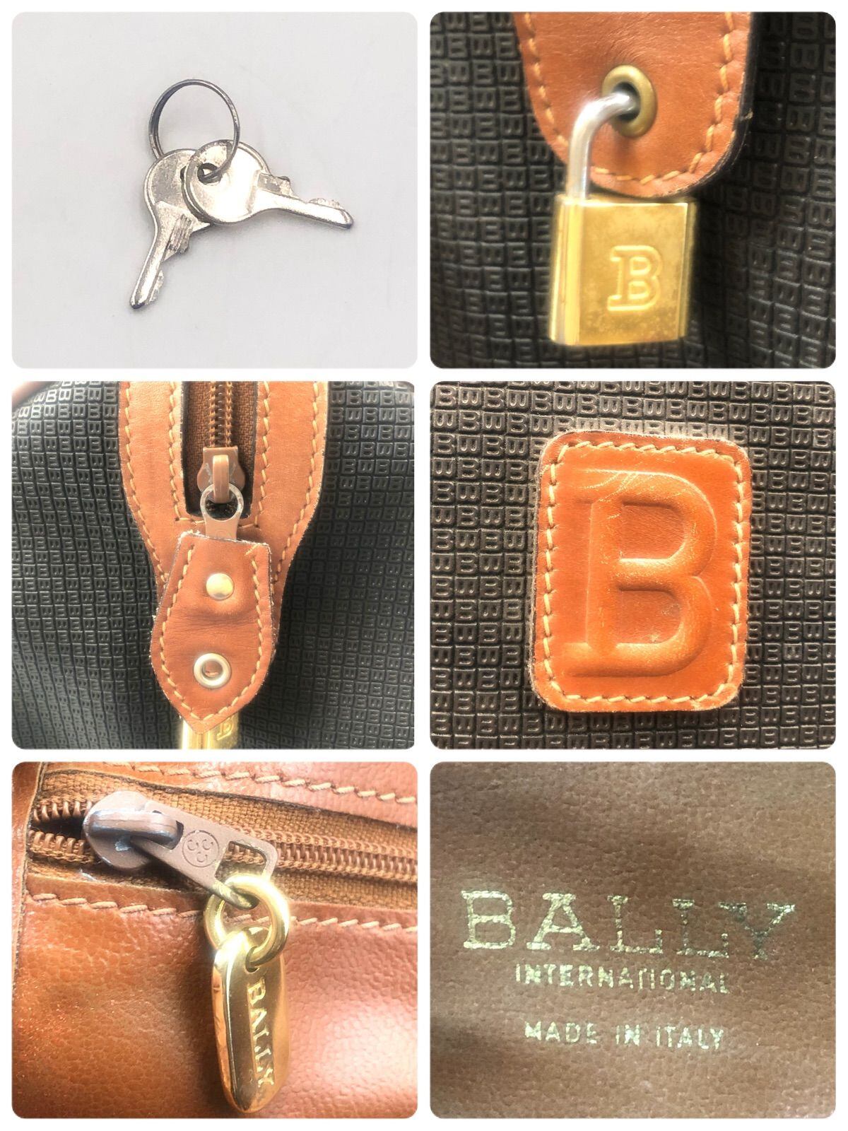 ■美品■BALLY バリー Bロゴ型押し総柄 大容量ボストンバッグ 旅行カバン PVC×レザー ブラック×ブラウン ゴールド金具 南京錠、鍵2つ付き イタリア製 小旅行 出張 ビジネス