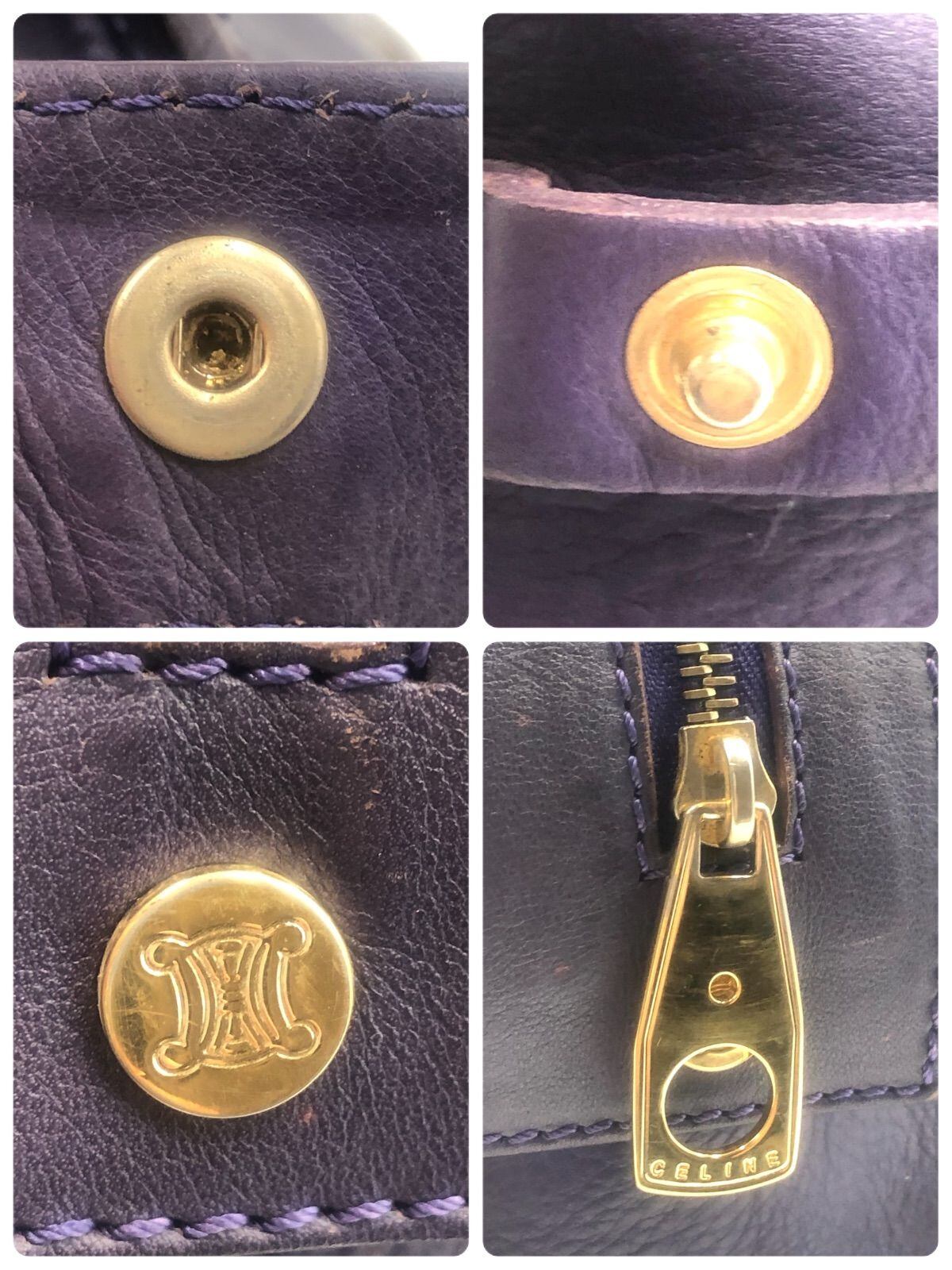 ■稀少デザイン■CELINE セリーヌ ハンドバッグ ミニボストンバッグ サークルパンチング レザー 本革 パープル ゴールド金具 トリオンフロゴリベット ロゴ型押し イタリア製 レディース
