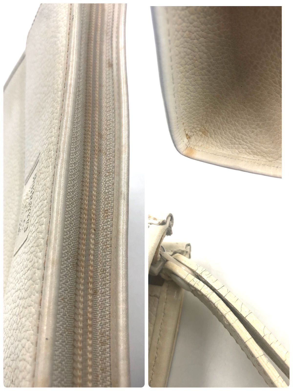 Burberrys バーバリー セカンドバッグ クラッチバッグ ホースマークロゴ型押し レザー 本革 ホワイト系アイボリー×内側ノバチェック ゴールド金具 ストラップ付き