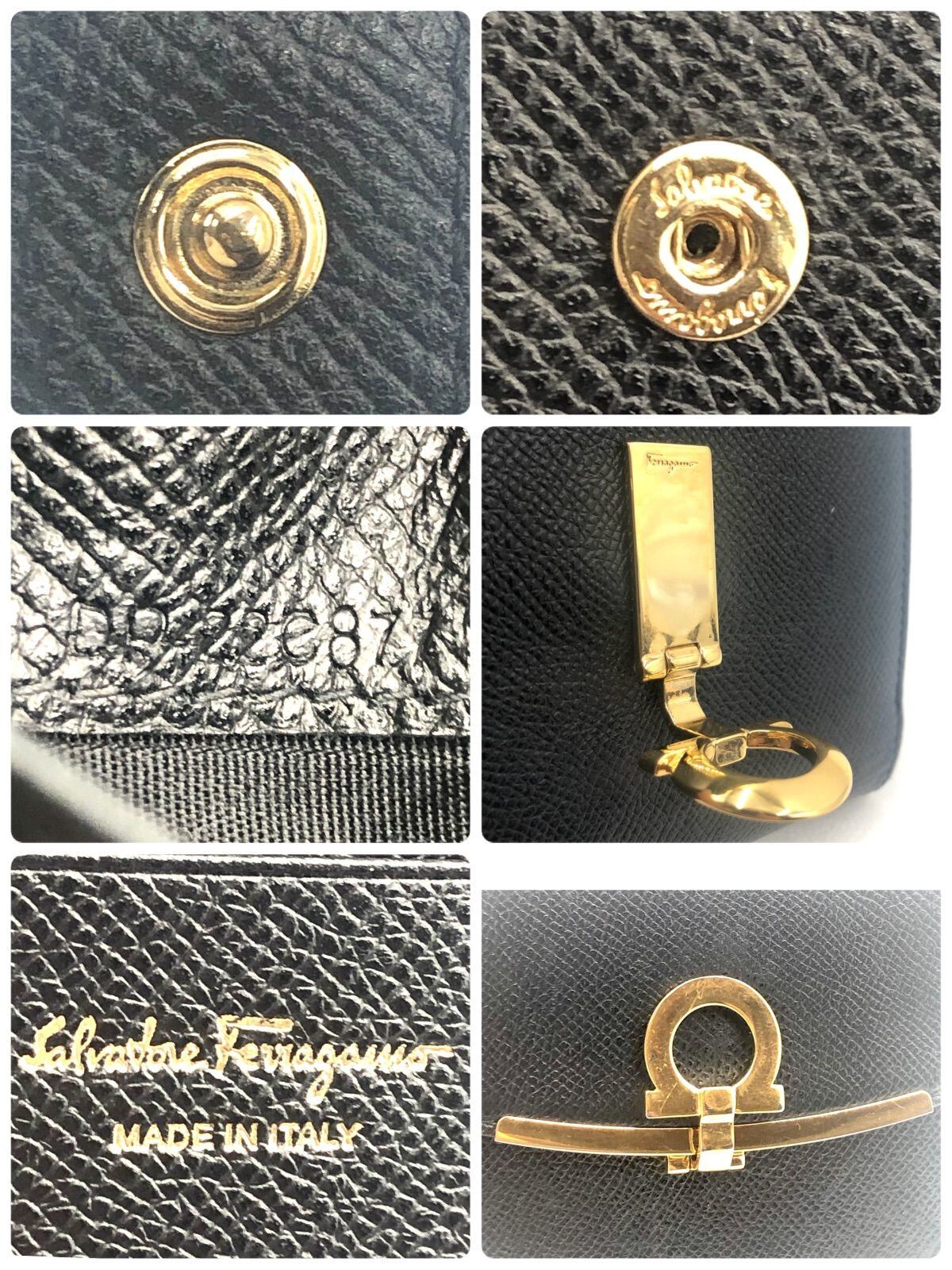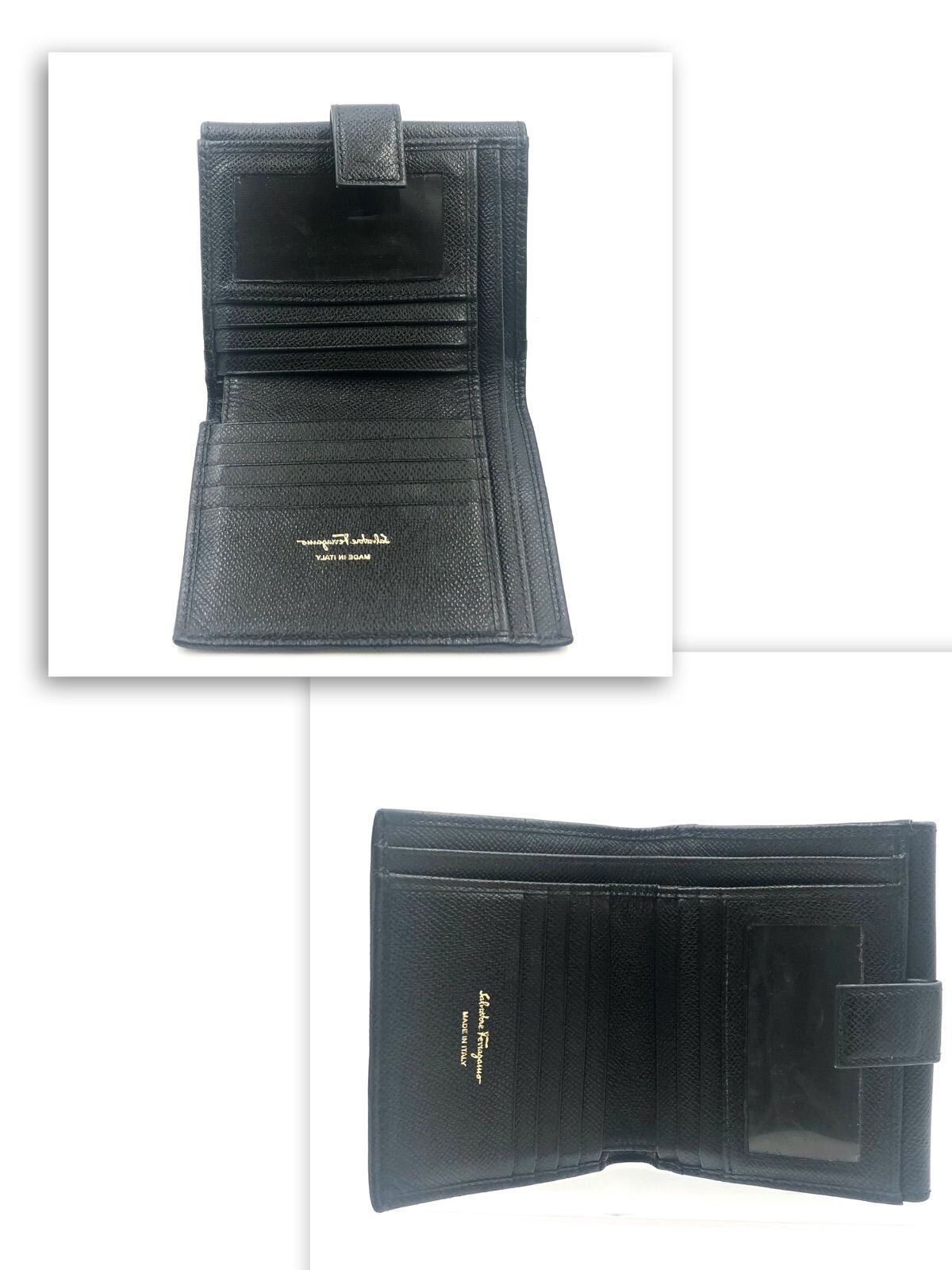 ■美品■Salvatore Ferragamo サルヴァトーレフェラガモ ガンチーノクリップ 三つ折り財布 レザー 本革 ブラック ゴールド金具 ガンチーニ イタリア製 刻印あり レディース