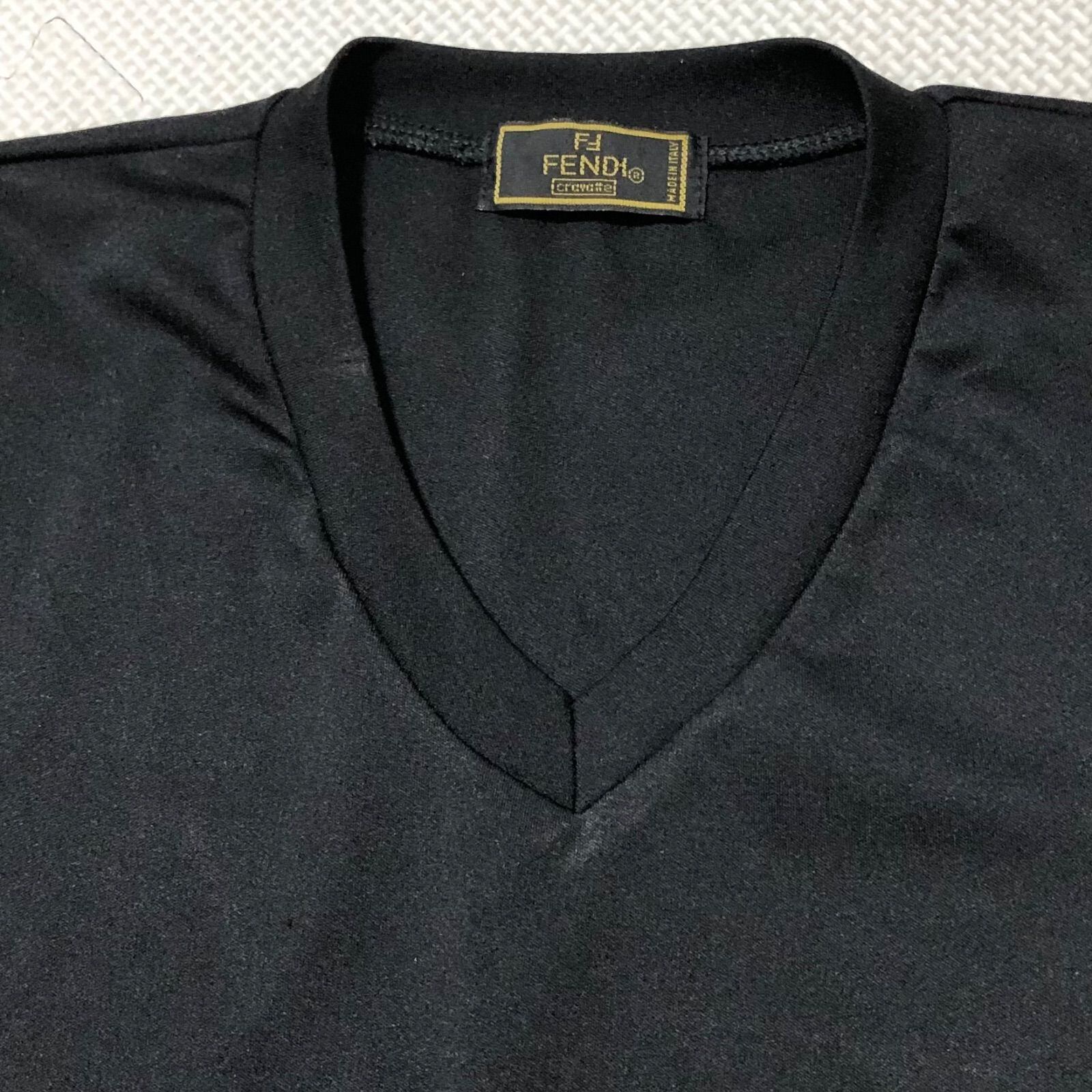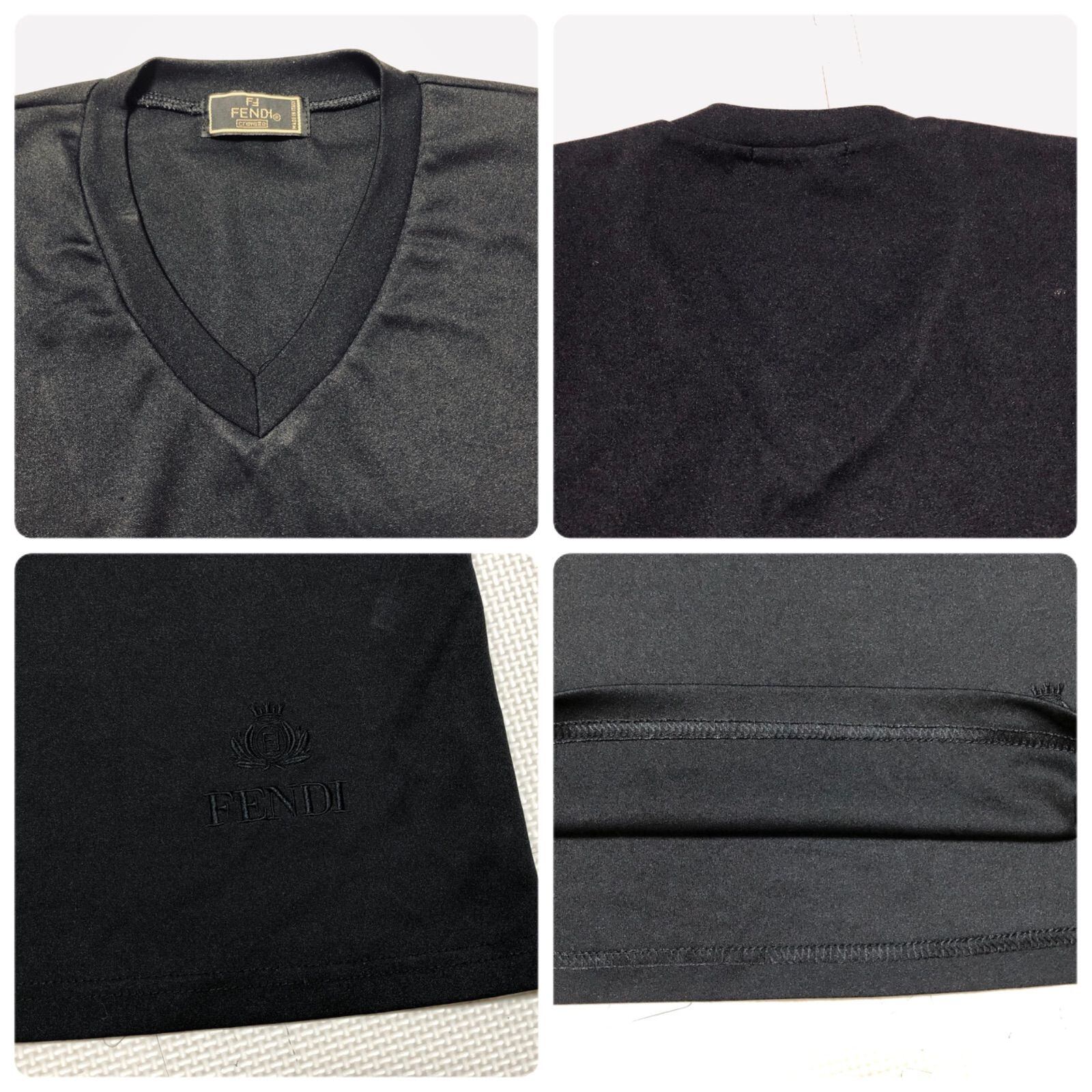 ■美品■FENDI フェンディ Vネック長袖Tシャツ ワンポイント刺繍ロゴ イタリア製 ブラック レディース L程度