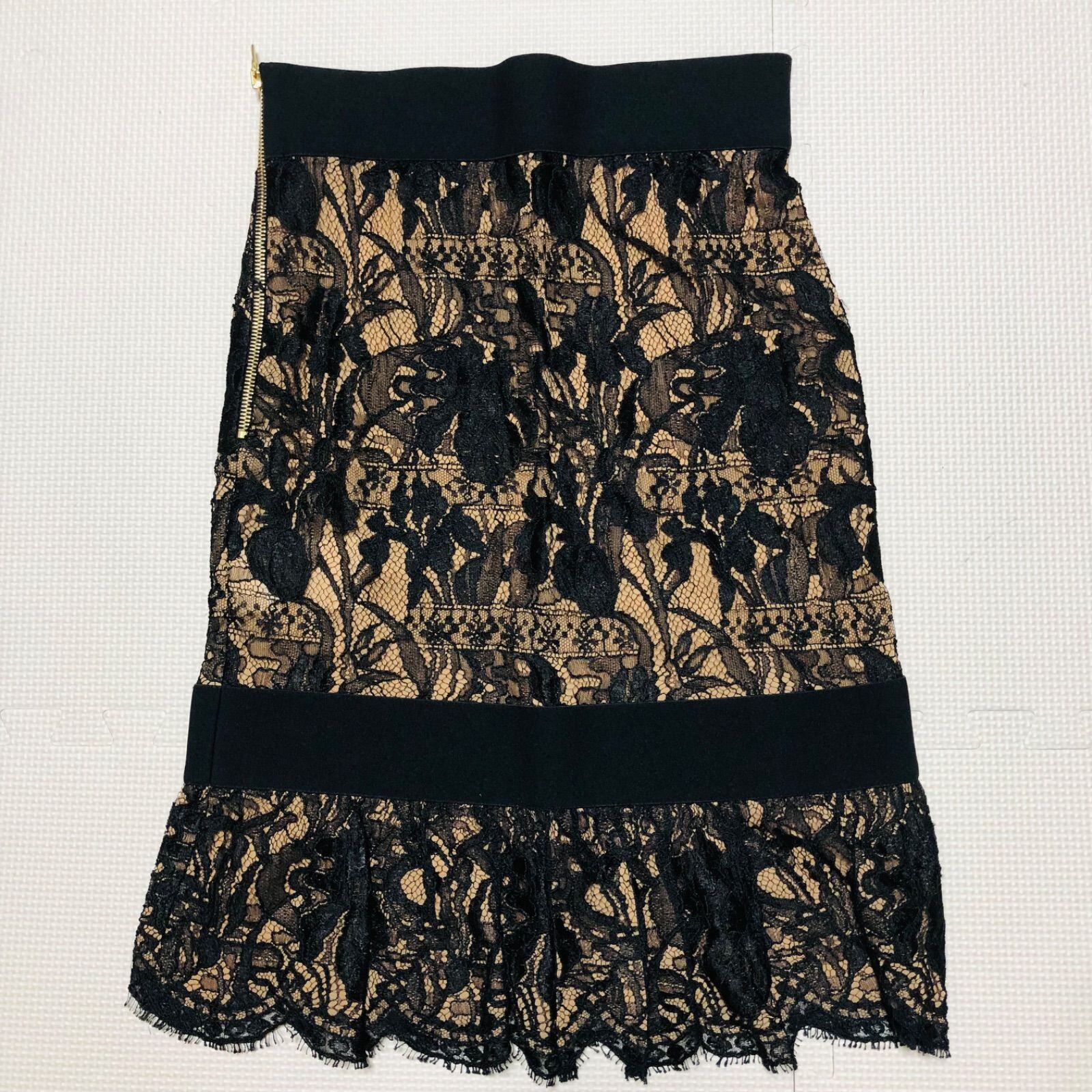 ■美品■EMILIO PUCCI エミリオプッチ 総レース セットアップ トップス&スカート ノースリーブ ブラック×ベージュ フランスサイズ34(XS) イタリア製 レディース