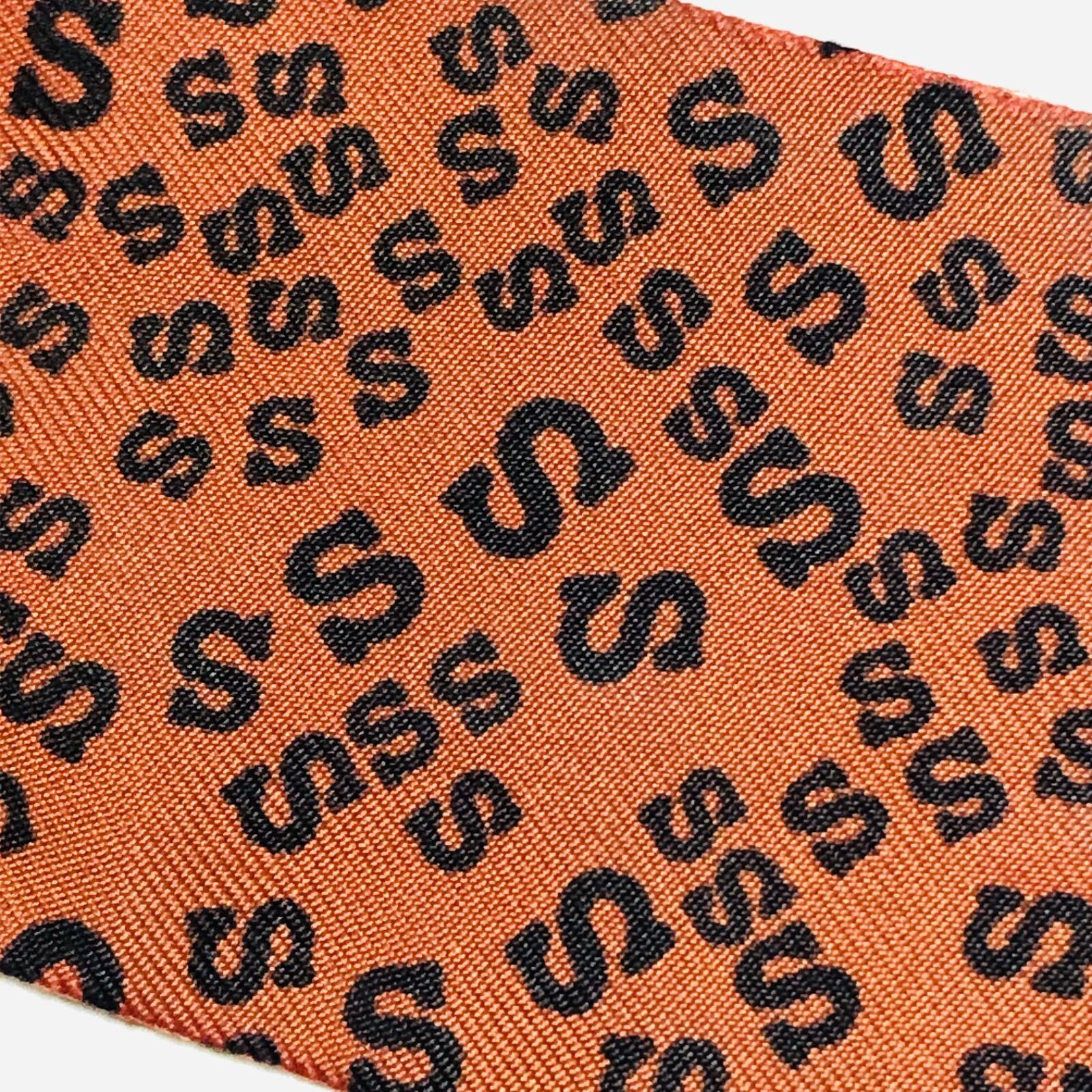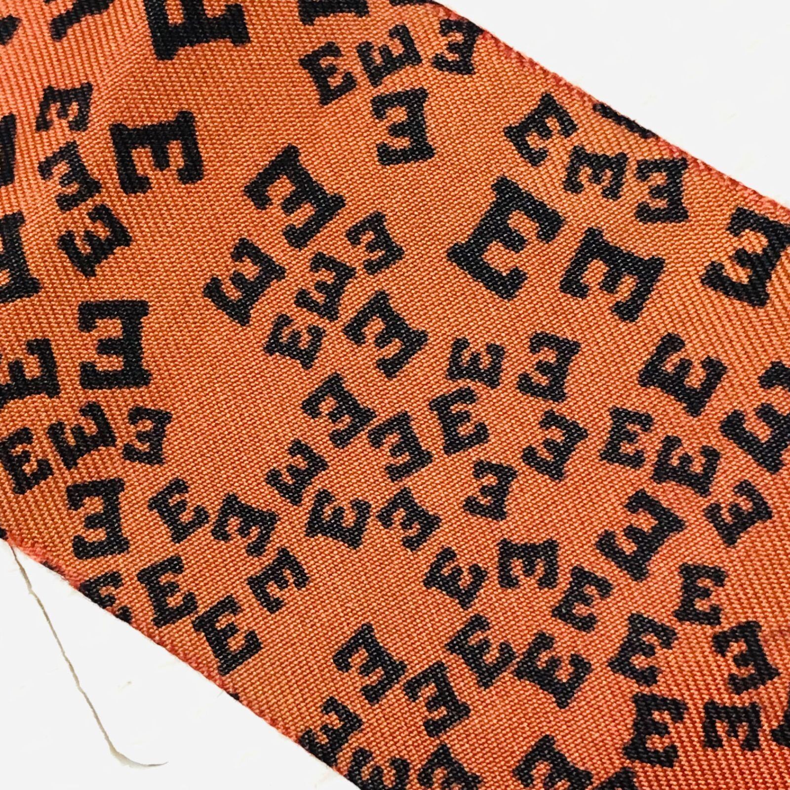 HERMES エルメス ツイリー 棒スカーフ アルファベットロゴ文字 H柄総柄 シルク フランス製 オレンジ×ブラック フランス製 布タグあり レディース