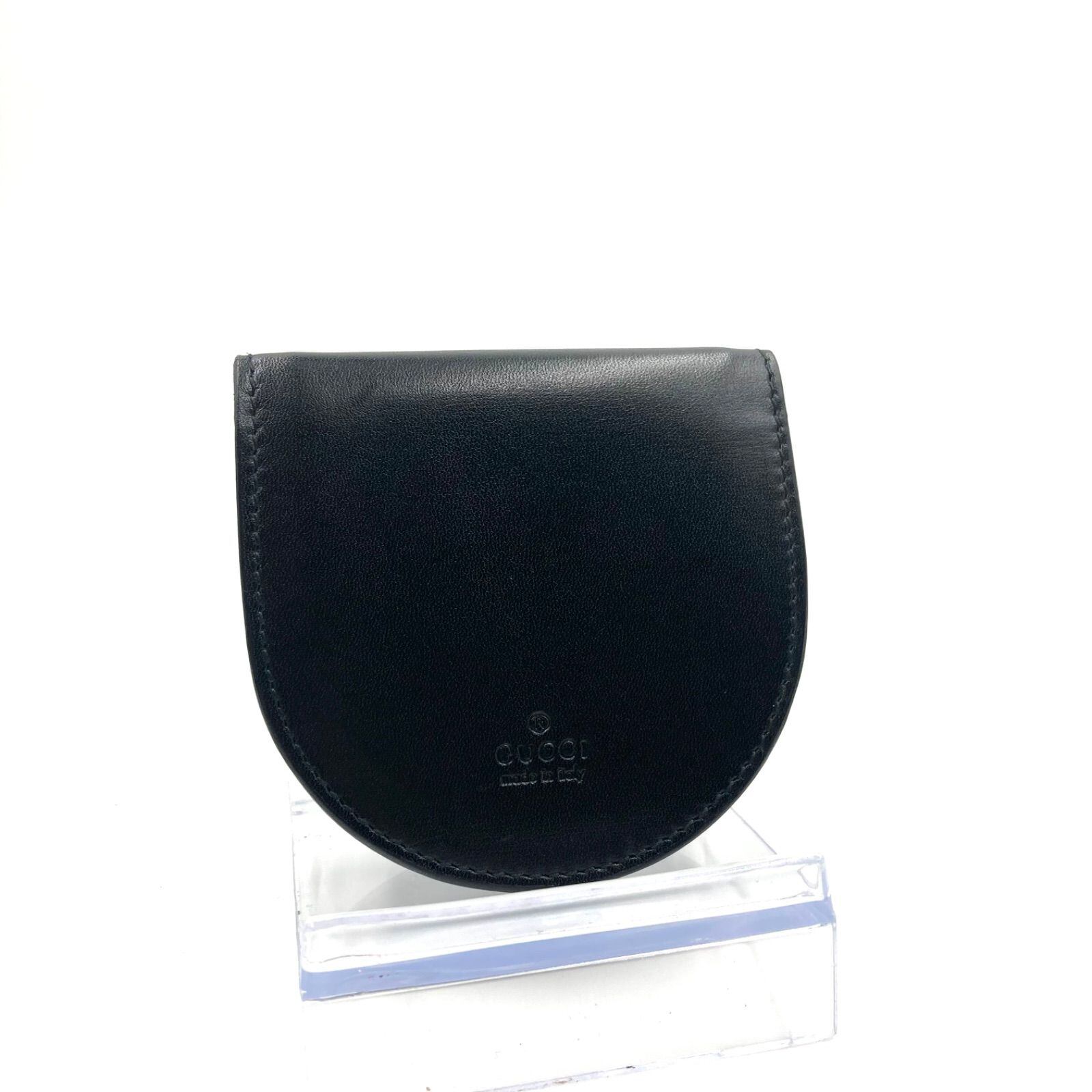 ■極美品 ■GUCCI グッチ 馬蹄型 コインケース 小銭入れ ロゴ型押し レザー 本革 ブラック 箱、冊子付き イタリア製 刻印あり