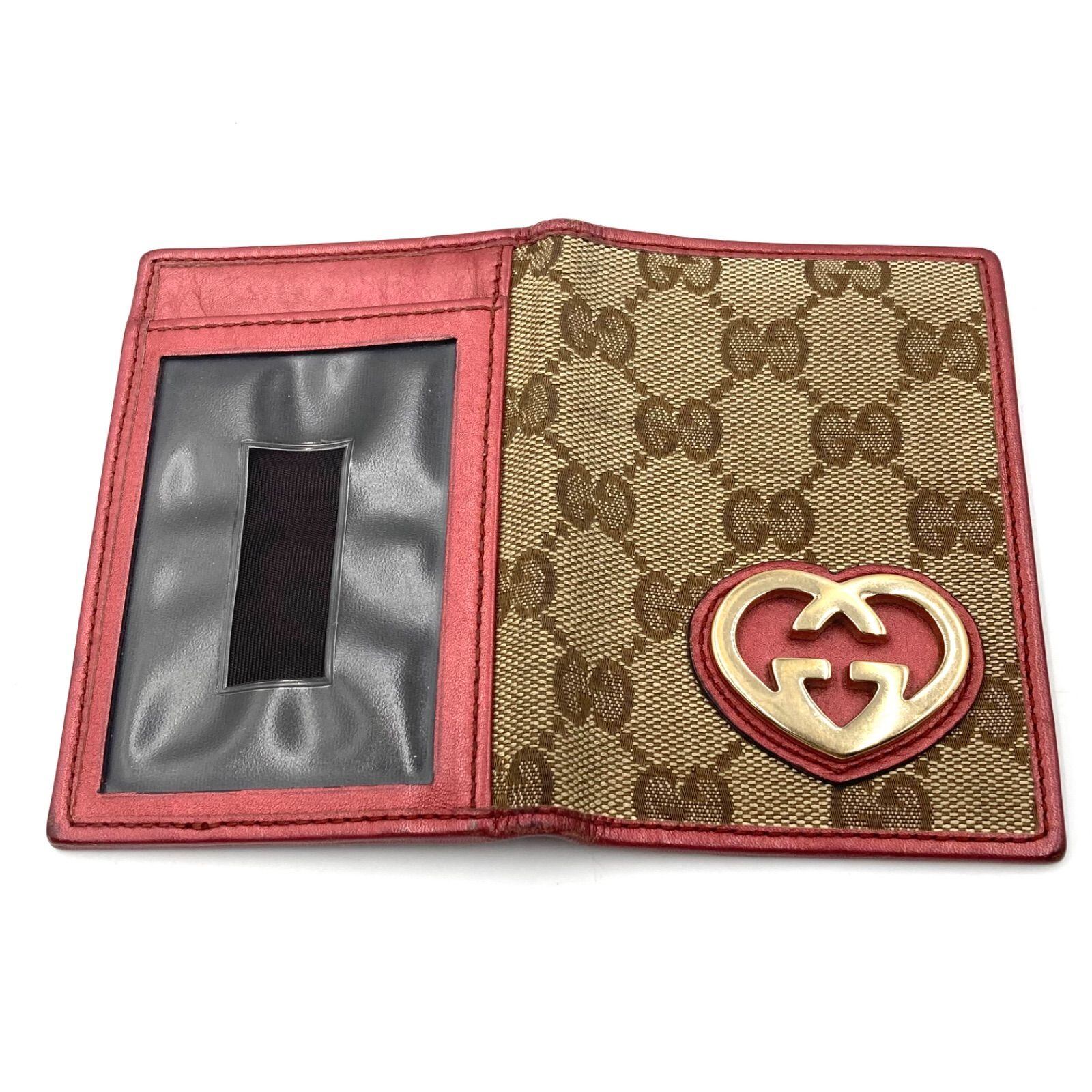 ■美品■GUCCI グッチ GGキャンバス パスケース カードケース ハートシェイプインターロッキングG キャンバス×レザー ブラウン×レッド ゴールド金具 イタリア製 刻印あり 251848・496085