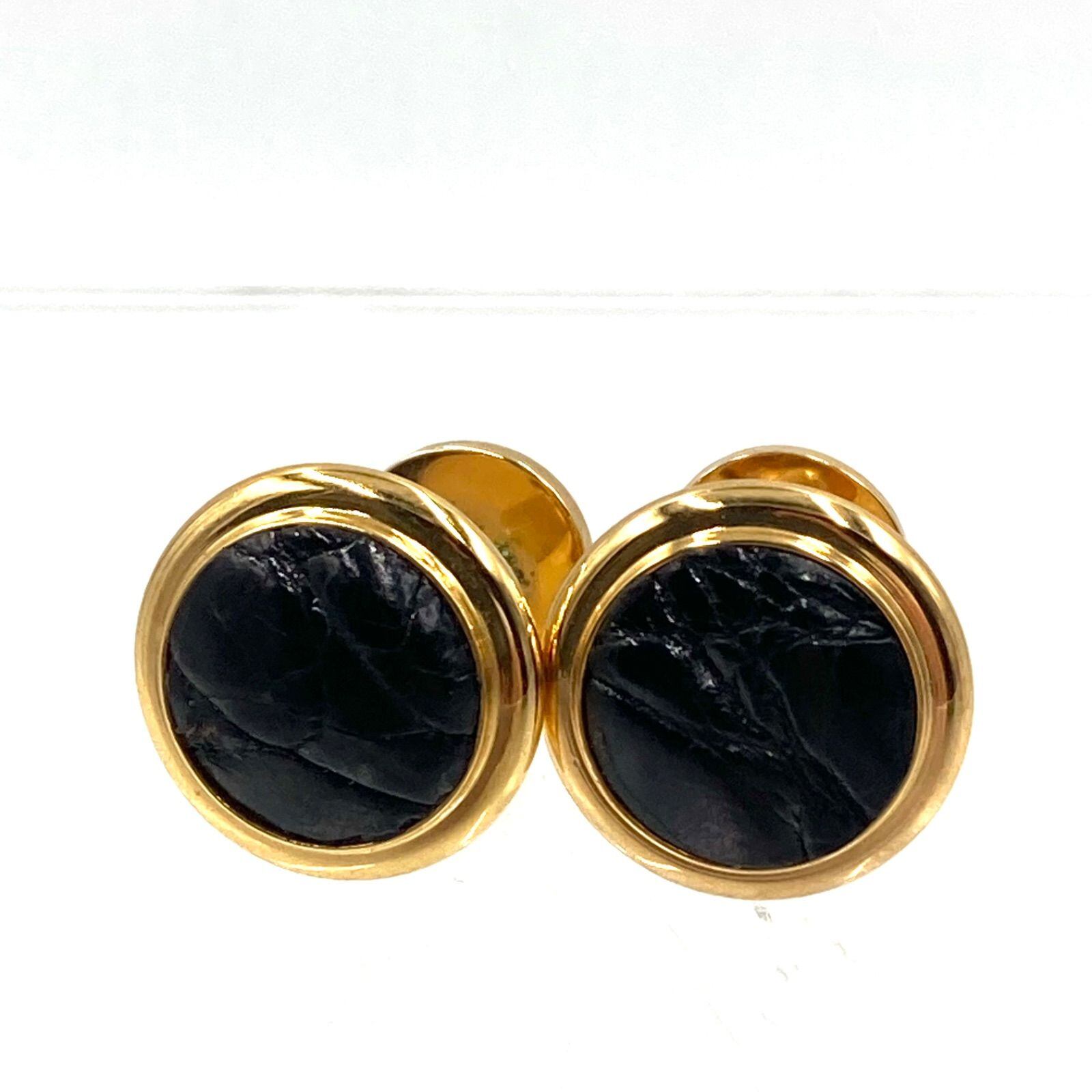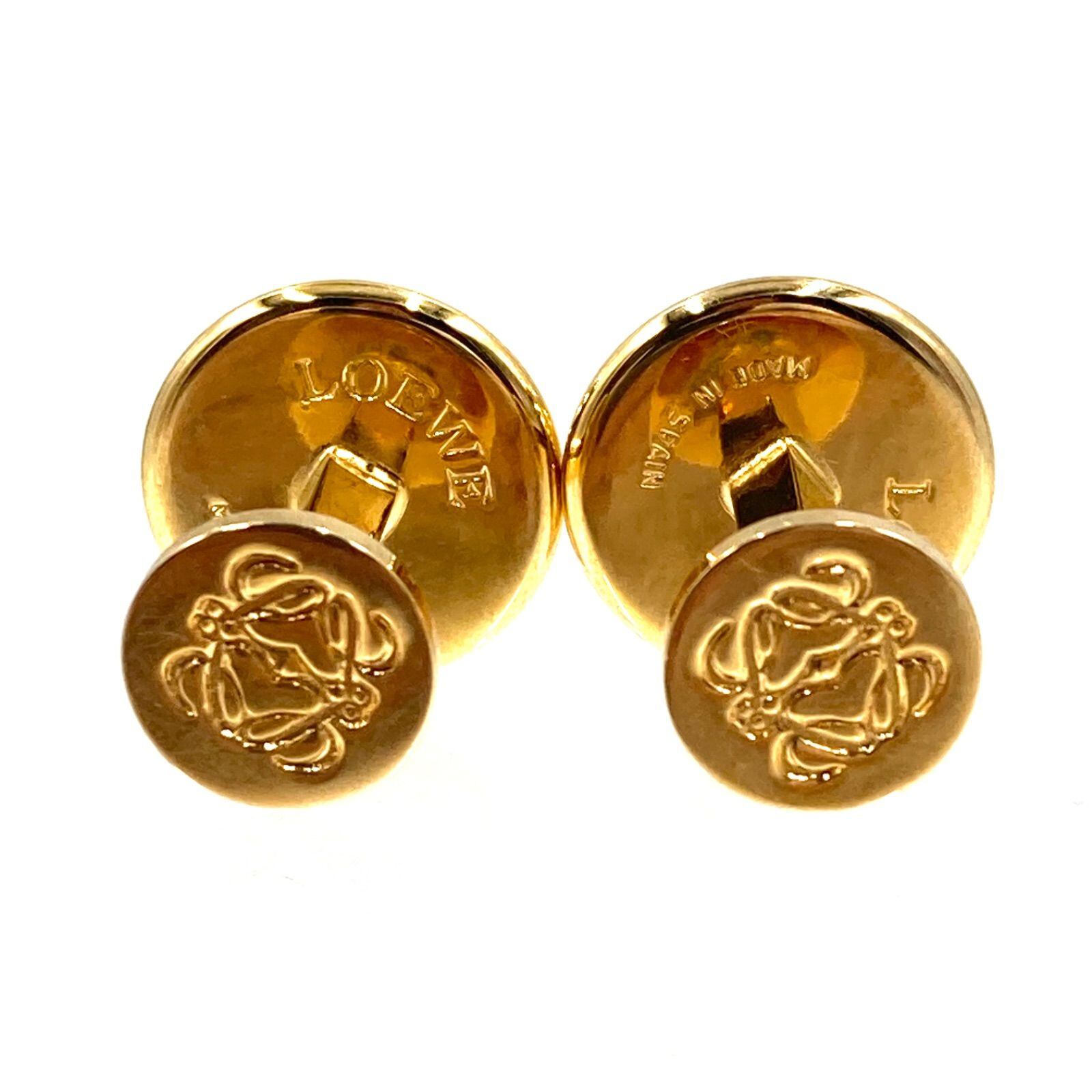 ■美品■LOEWE ロエベ カフスボタン カフリンクス ゴールド×ブラック アナグラム スペイン製 箱、クロス付き メンズ