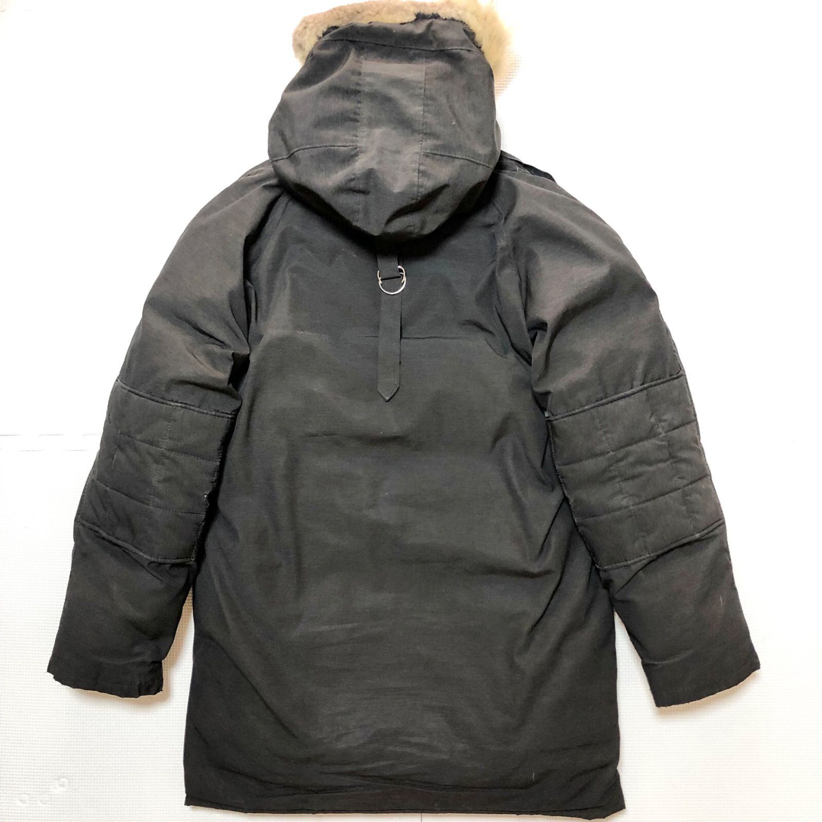 Schott ショット ダウンジャケット sizeS(日本サイズではM程度) 米国製 ブラック系 フード、ファー ダブルジッパー+フラップ+マジックテープ ドローコード(社外部品付き) USA製 メンズ