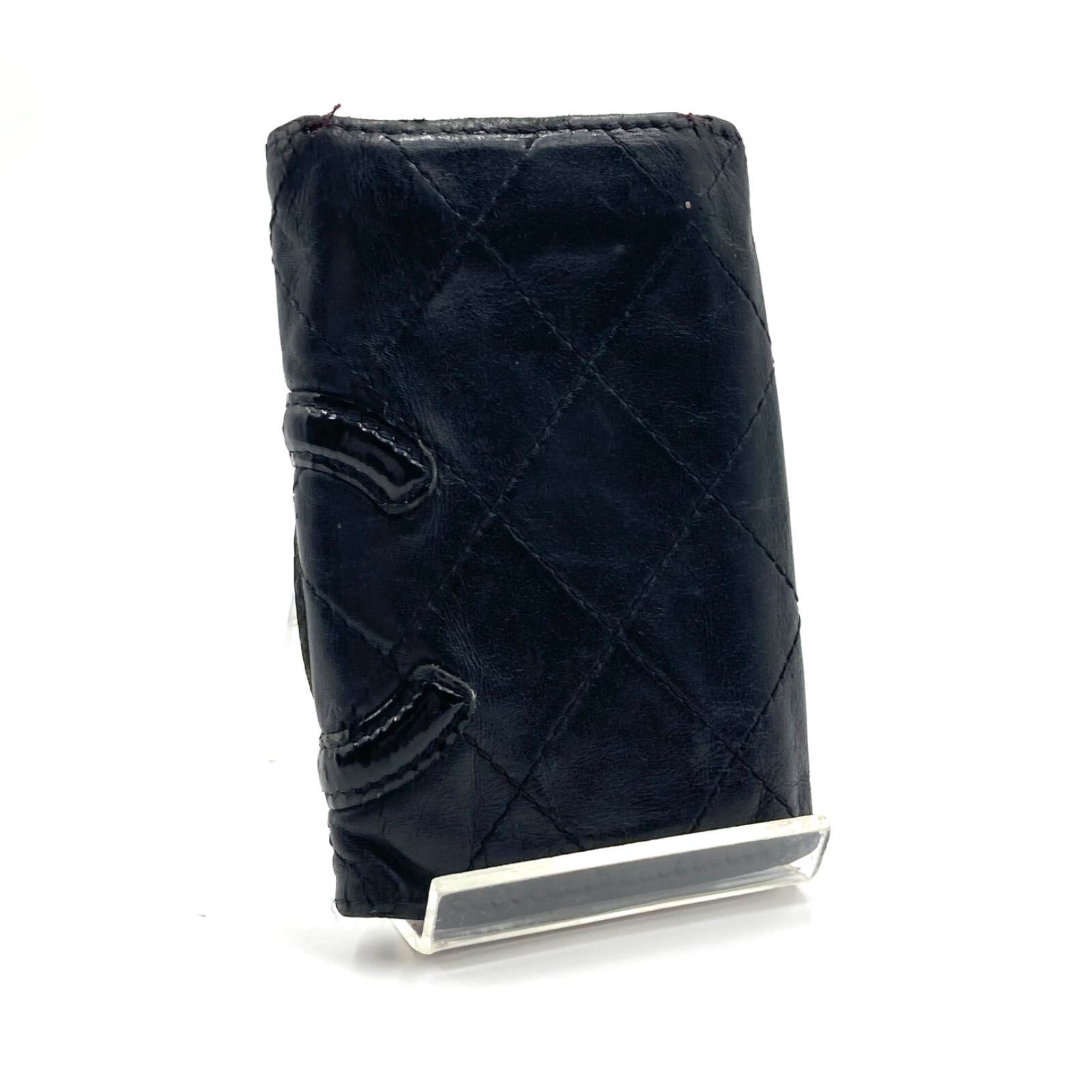 CHANEL シャネル カンボンライン キーケース ココマーク×マトラッセ レザー 本革 ブラック×ピンク シルバー金具 シリアルシール 12番台 販売店シール イタリア製