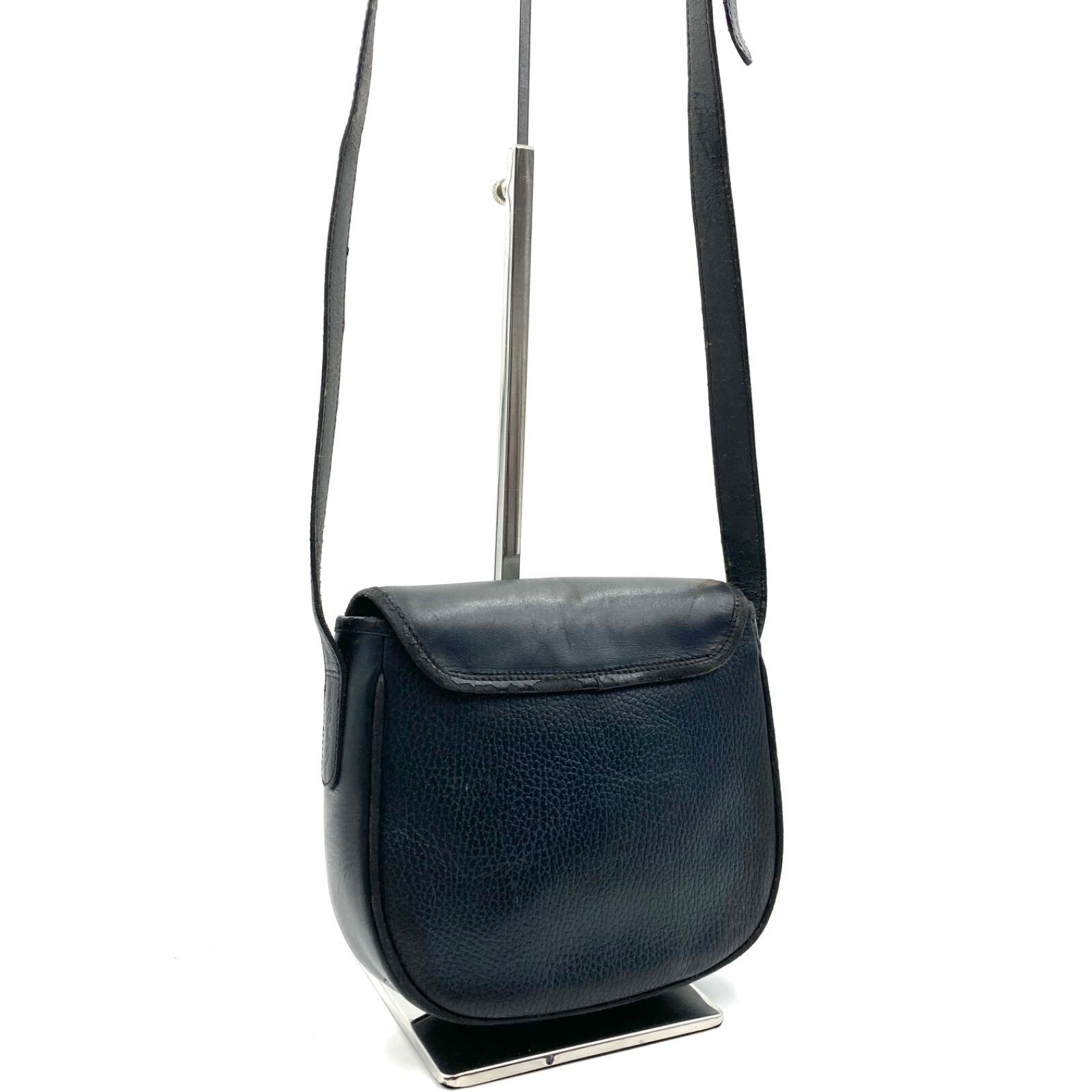 Burberrys バーバリー ロゴエンブレム型押し ショルダーバッグ レザー ダークネイビー×内張りグレーノバチェック ゴールド金具 斜めがけ クロスボディ 半円型