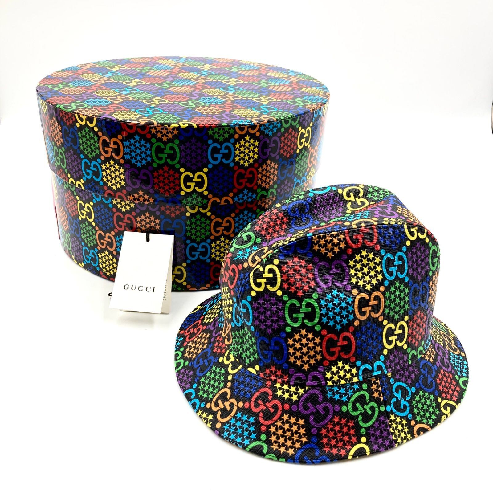 ■未使用同然■鑑定済み■現行タグ■GUCCI グッチ GGサイケデリック フェドラハット バケットハット マルチカラー サイズM(58cm) イタリア製 コーティングキャンバス ケース付き タグ付き