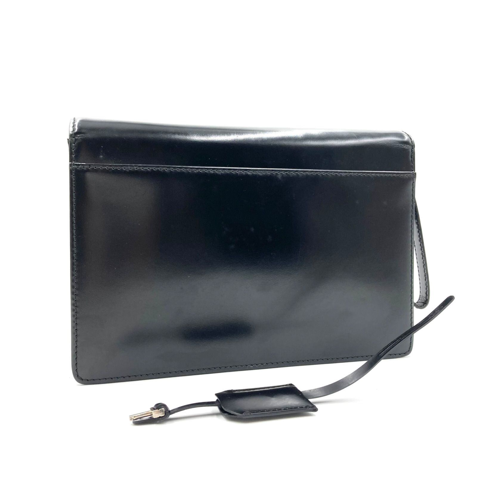 ■極上美品■Salvatore Ferragamo サルヴァトーレフェラガモ セカンドバッグ クラッチバッグ レザー 本革 ブラック シルバー金具 ロゴ鍵ホック クロシェット+鍵付き イタリア製 刻印あり EO-24 5043