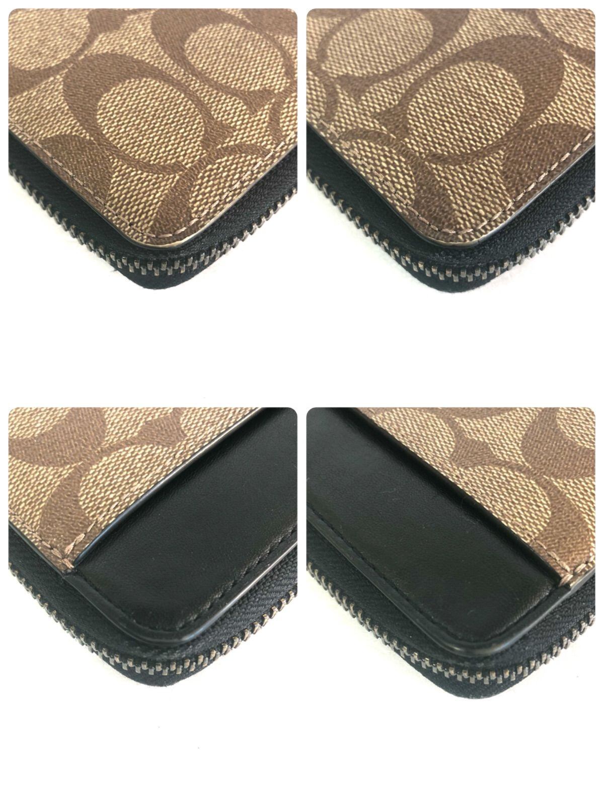 ■極美品■COACH コーチ シグネチャーPVC×レザー ラウンドファスナー 長財布 ベージュ×ブラック シルバー金具 布タグあり