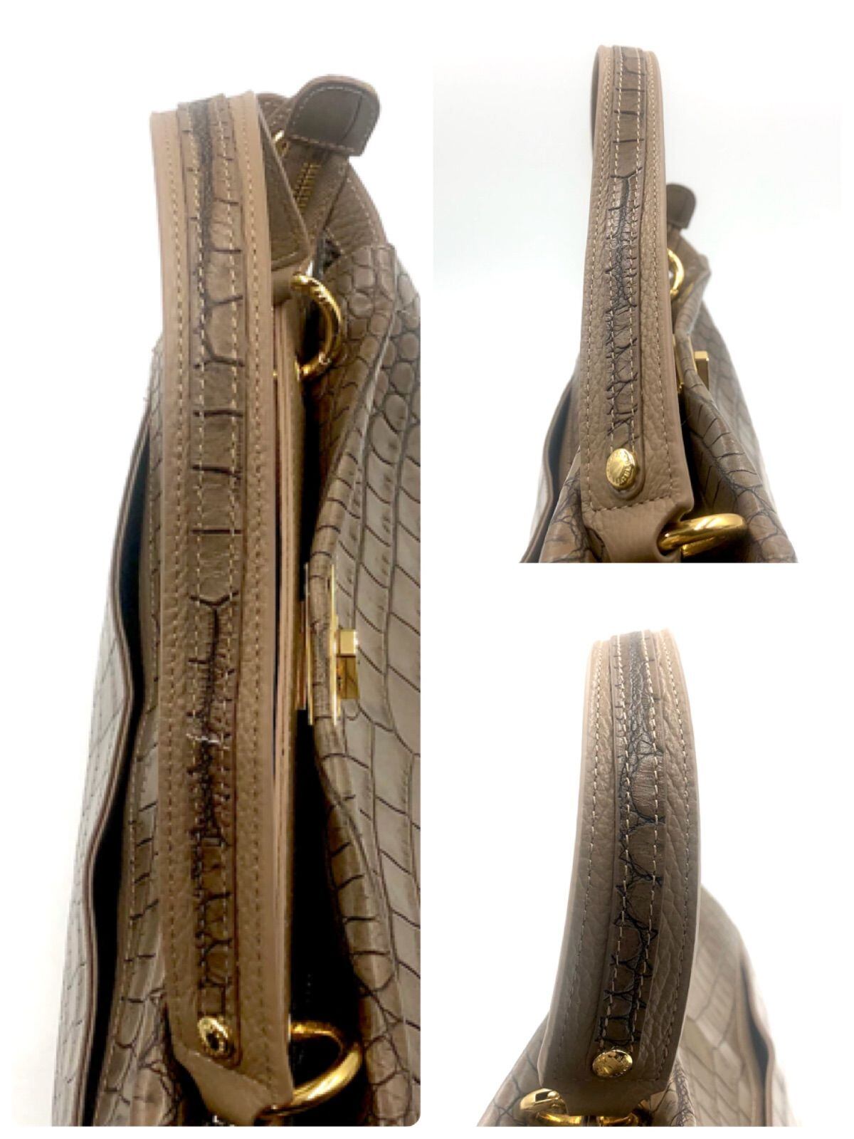 ■未使用品■LEATHER JEWELS レザージュエルズ 2way トートバッグ ショルダーバッグ クロコ型押し レザー 本革 ブラウン系 ゴールド金具 ターンロック ショルダー付属 斜めがけ クロスボディ 肩がけ 保存袋、箱付き レディース