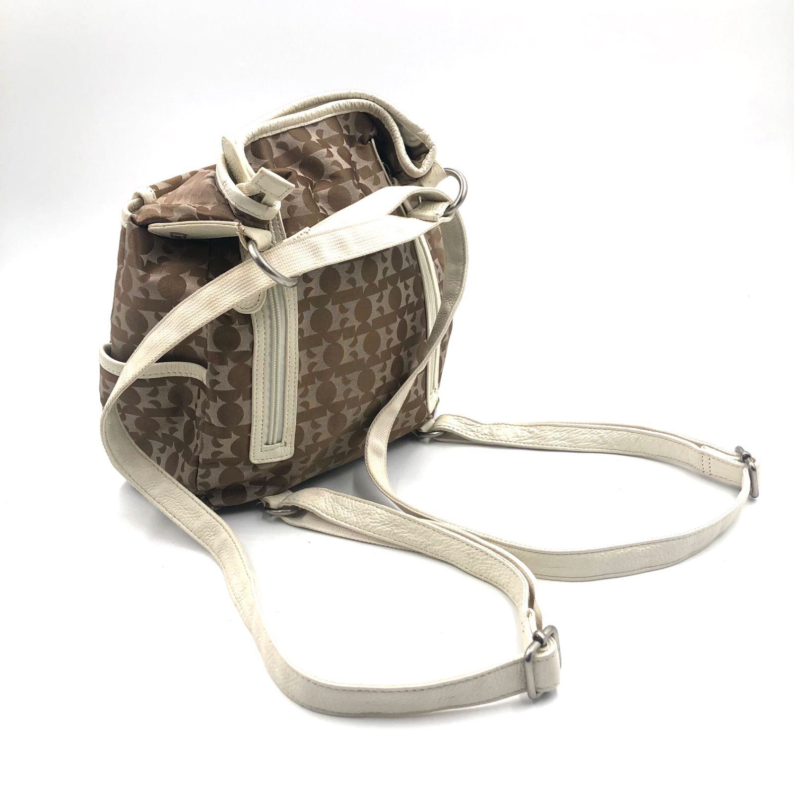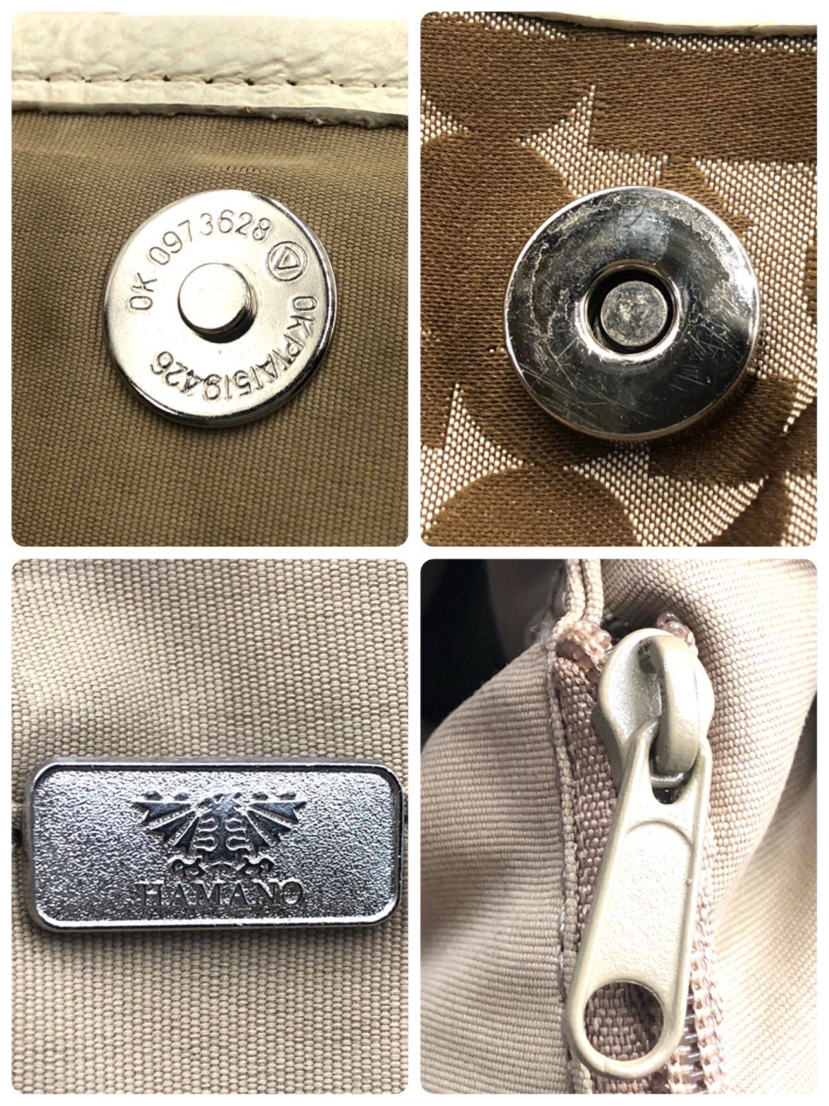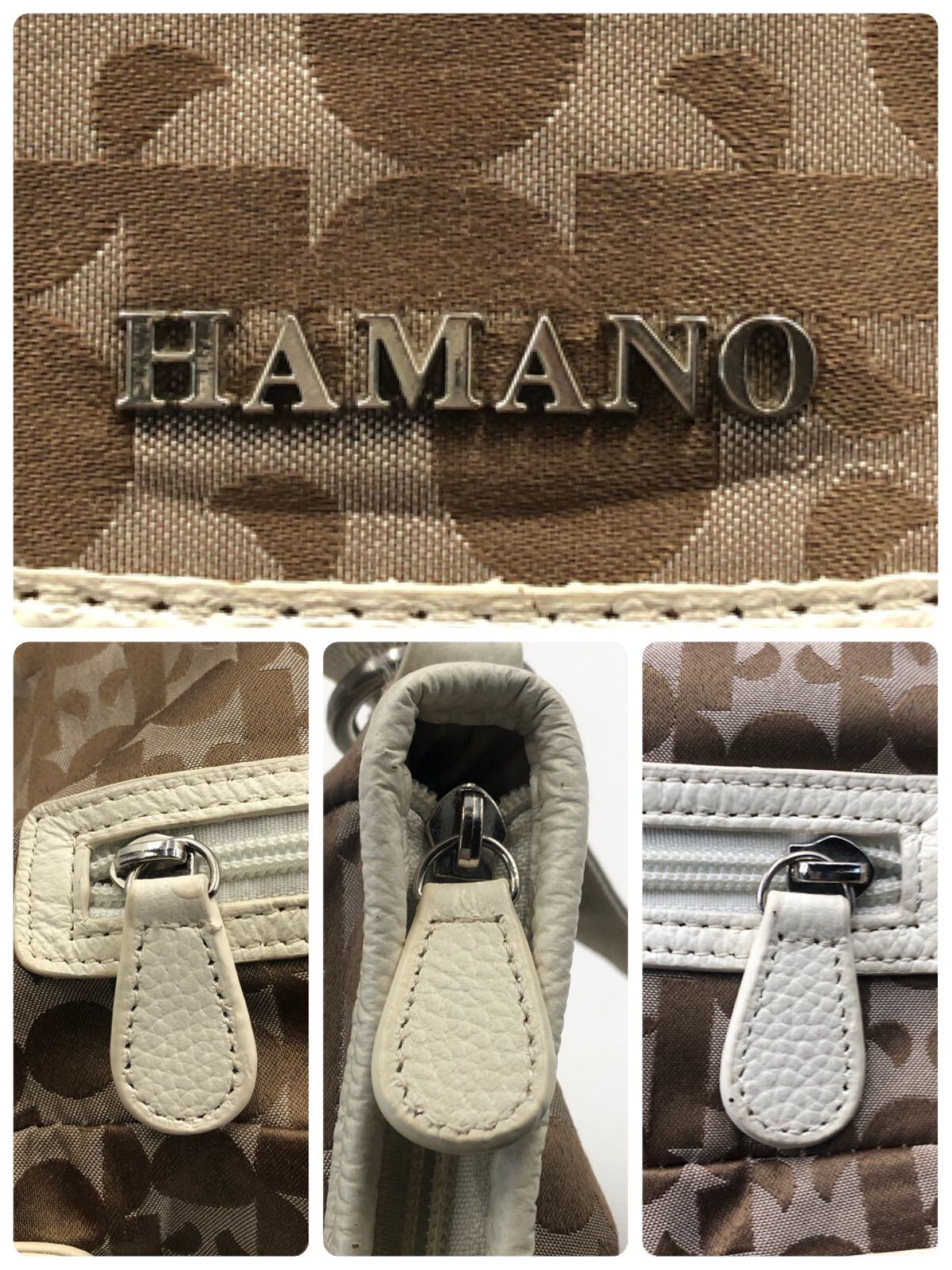 ■美品■HAMANO ハマノ 濱野皮革工藝 2way リュックサック ショルダーバッグ キャンバス×レザー Hロゴ総柄 ブラウン シルバー金具 レディース