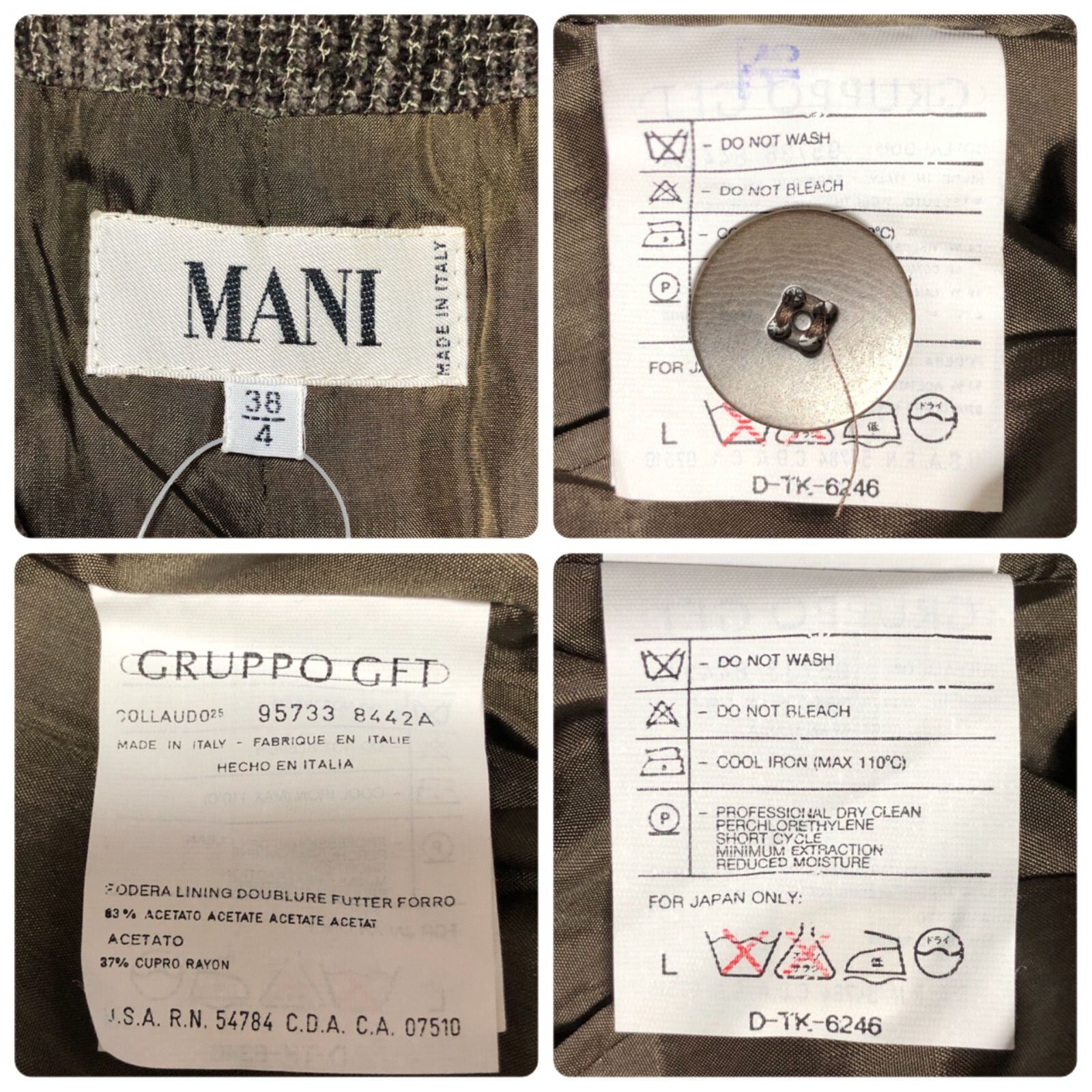 ■未使用タグ付き■定価11万3千円■希少アルマーニ限定ライン■MANI マーニ ウール混ジャケット シングル 1つボタン size 38(M) イタリア製 肩パッド 替えボタン付き グレーブラウン系 レディース