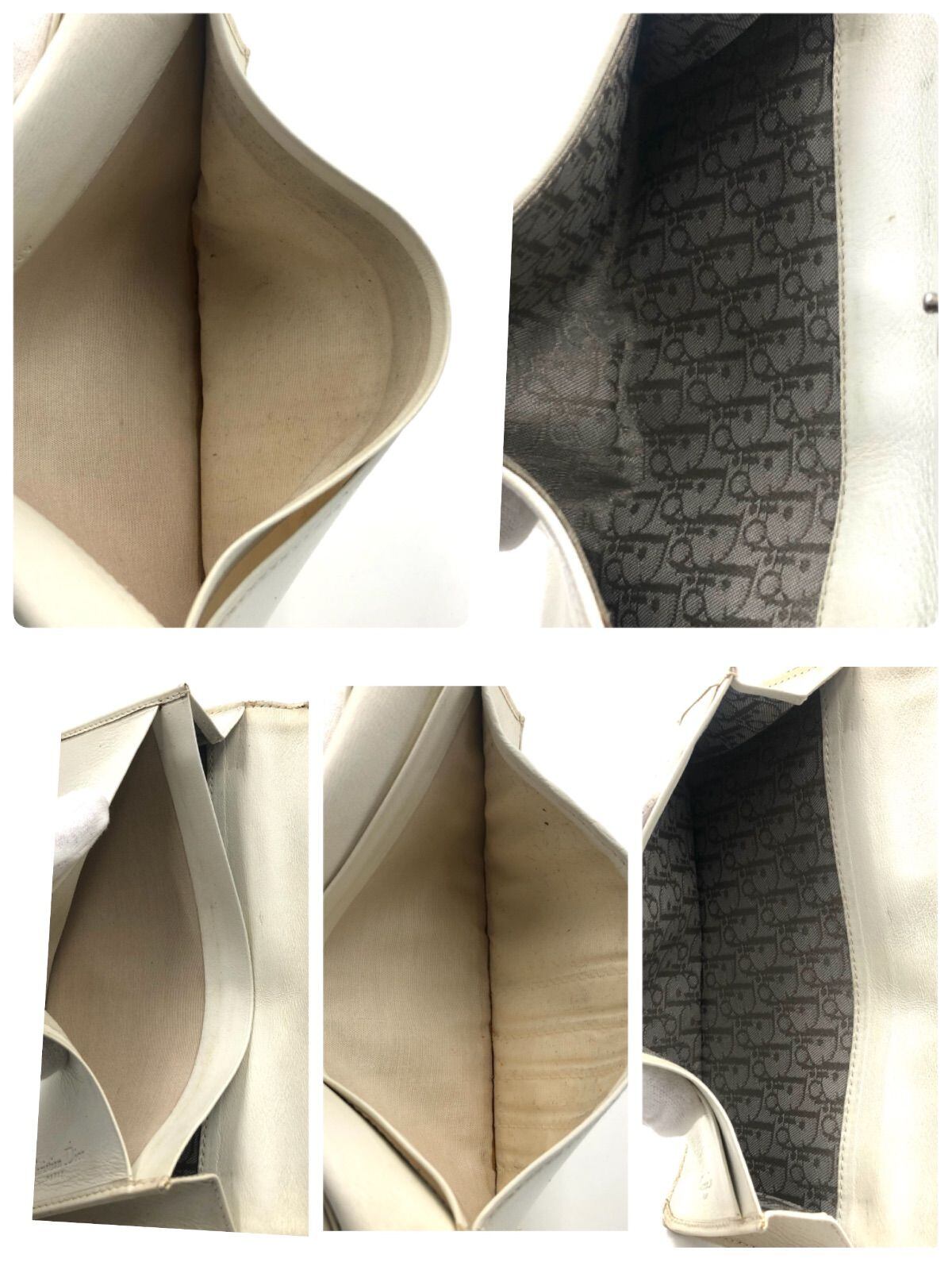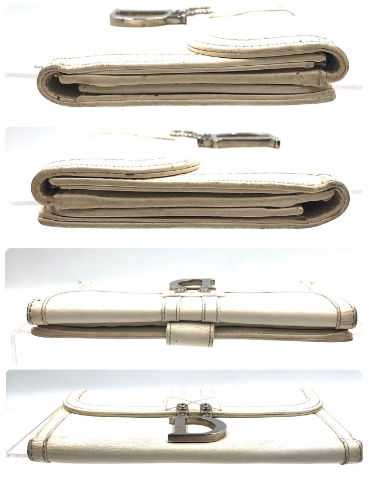 Christian Dior クリスチャンディオール D金具 長財布 ロングウォレット レザー 本革 ホワイト系 シルバー金具 ステッチ イタリア製 刻印あり レディース