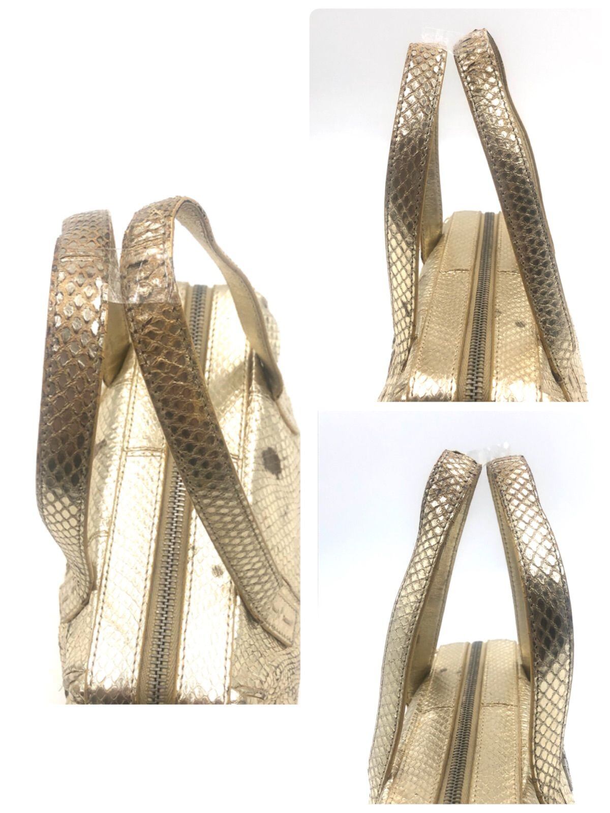 Dolce&Gabbana ドルチェ&ガッバーナ パイソン ミニボストンバッグ ハンドバッグ コーティングレザー 本革 イタリア製 ゴールド ロゴラインストーン レディース