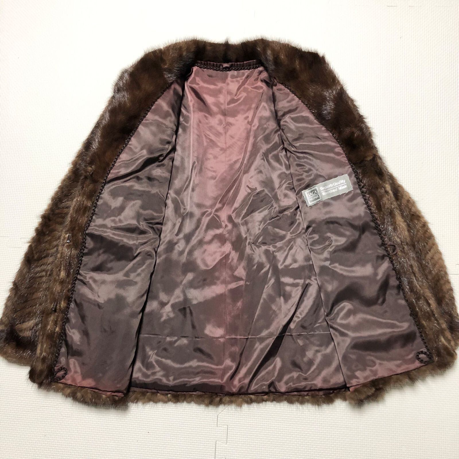 ■美品■銀サガ■ビッグサイズ■SAGA MINK サガミンク ショート丈ミンクファーコート 毛皮コート スタンドカラー ヘリンボーンパターン size13号(XL相当) ブラウン レディース