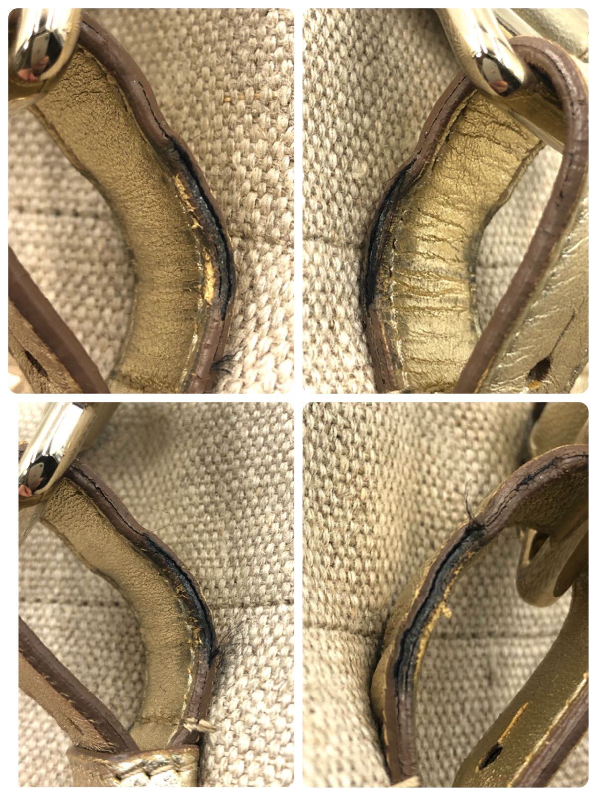 Yves saint Laurent イヴサンローラン カハラ トートバッグ YSLビッグロゴ ベージュ×シャンパンゴールド イタリア製 刻印あり レディース