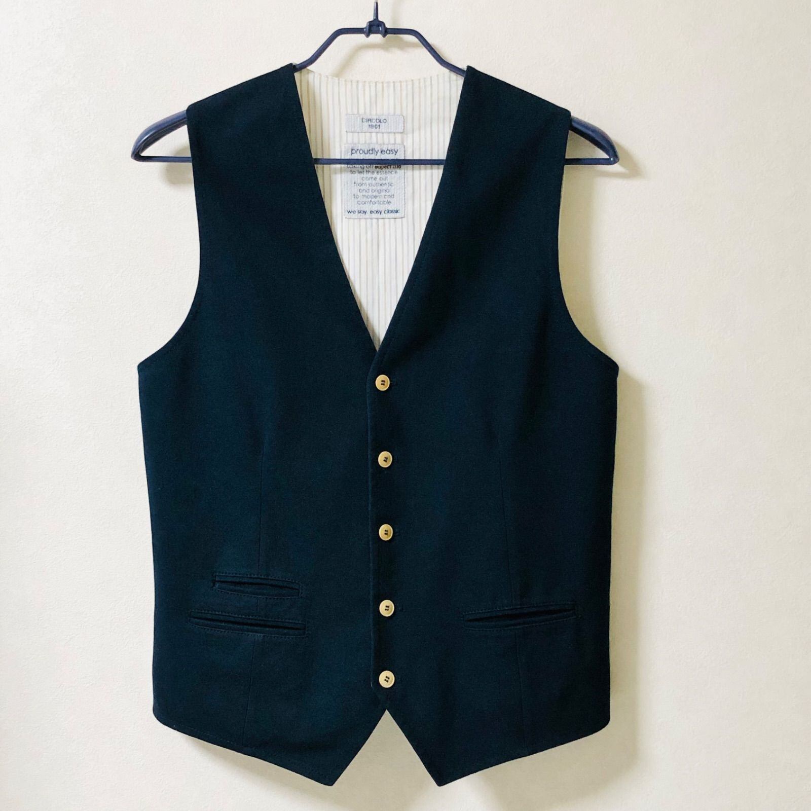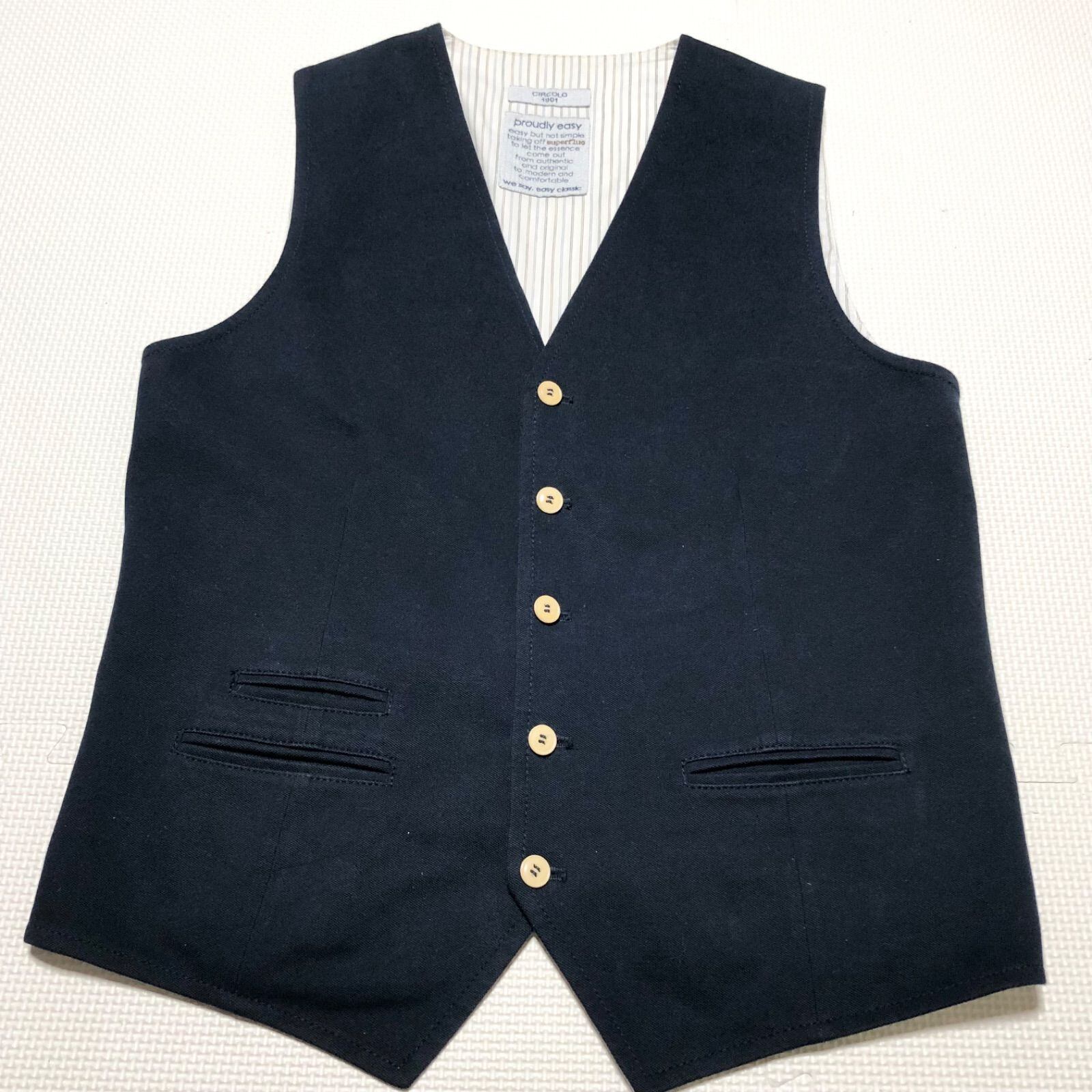 ■表側美品■CIRCOLO1901 チルコロ ベスト ジレ size48(L) ルーマニア製 無地ネイビー×ホワイトストライプ コットン×エラスタン メンズ