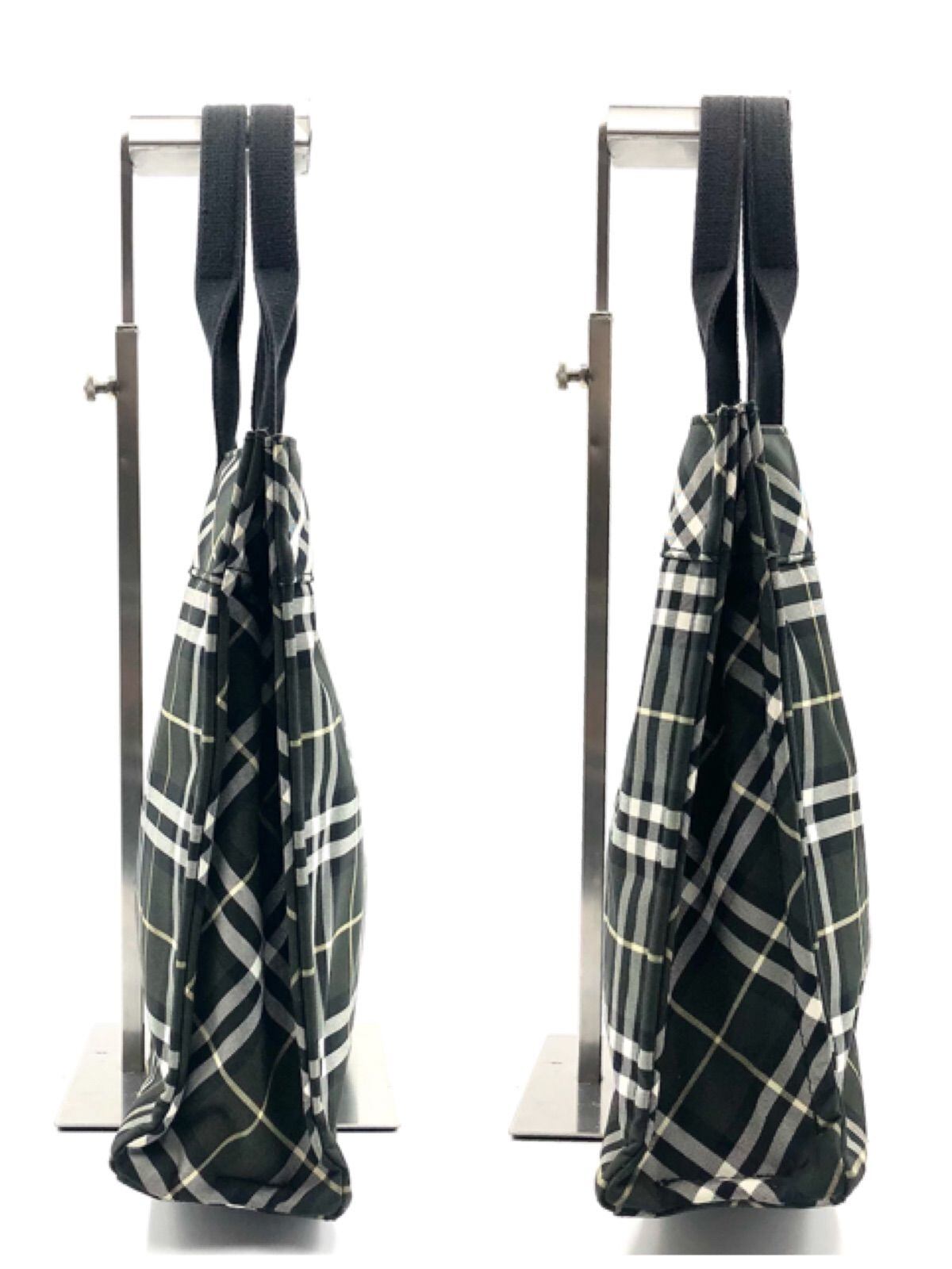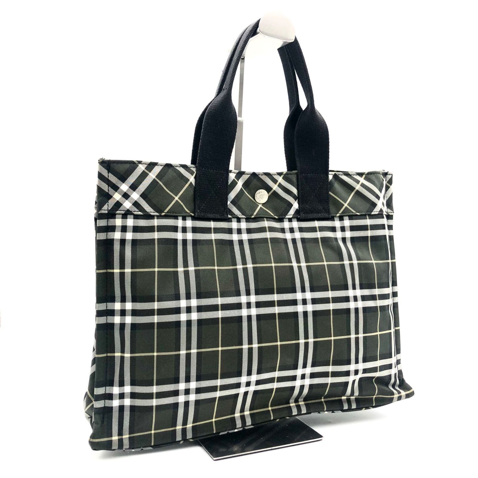 ■美品■BURBERRY BLUE LABEL バーバリーブルーレーベル グレーノバチェック総柄 トートバッグ キャンバス グレー シルバー金具 ロゴボタン
