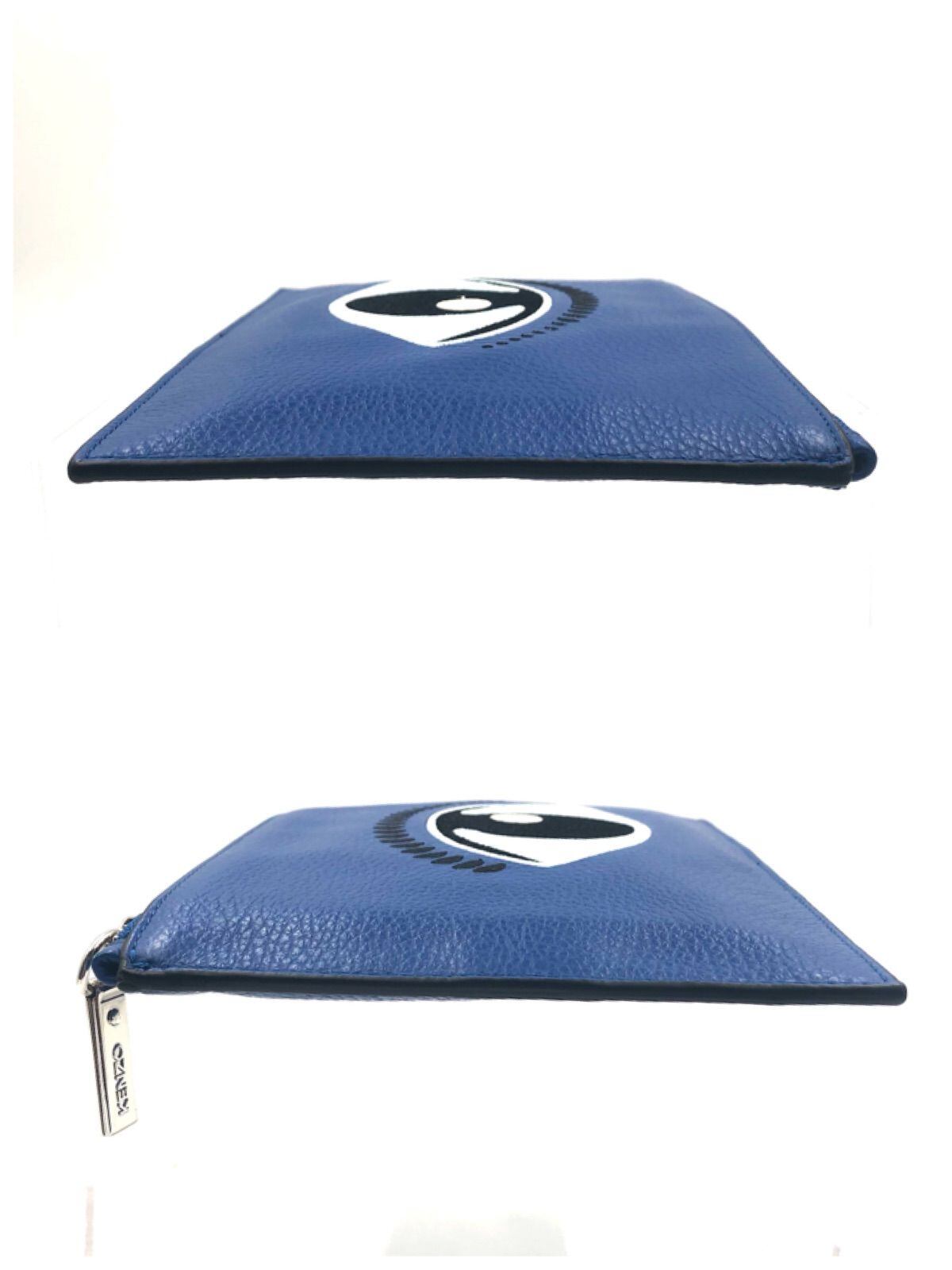 ■極上美品■希少■KENZO ケンゾー EYEクラッチ アイロゴ ポーチ クラッチバッグ レザー 本革 ブルー 刻印あり 目 ビッグアイ レディース 派手