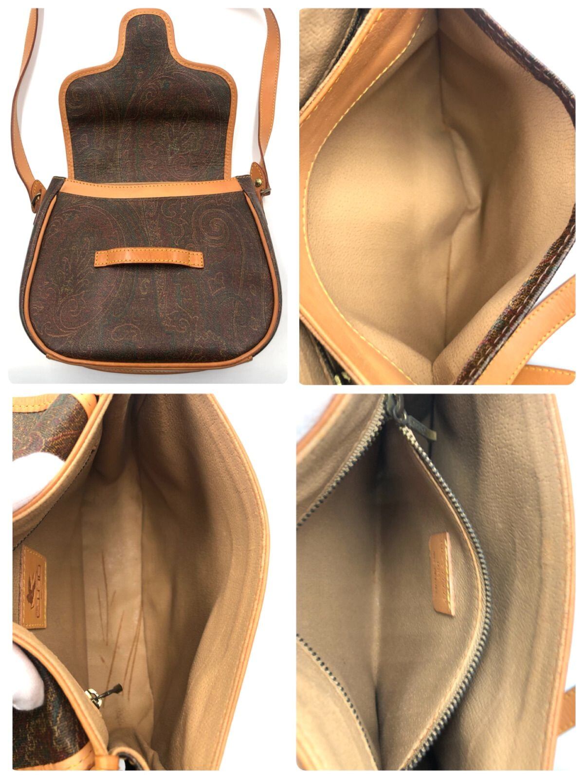 ■美品■ETRO エトロ ペイズリー ショルダーバッグ レザー×PVC ブラウン 斜めがけ クロスボディ レディース