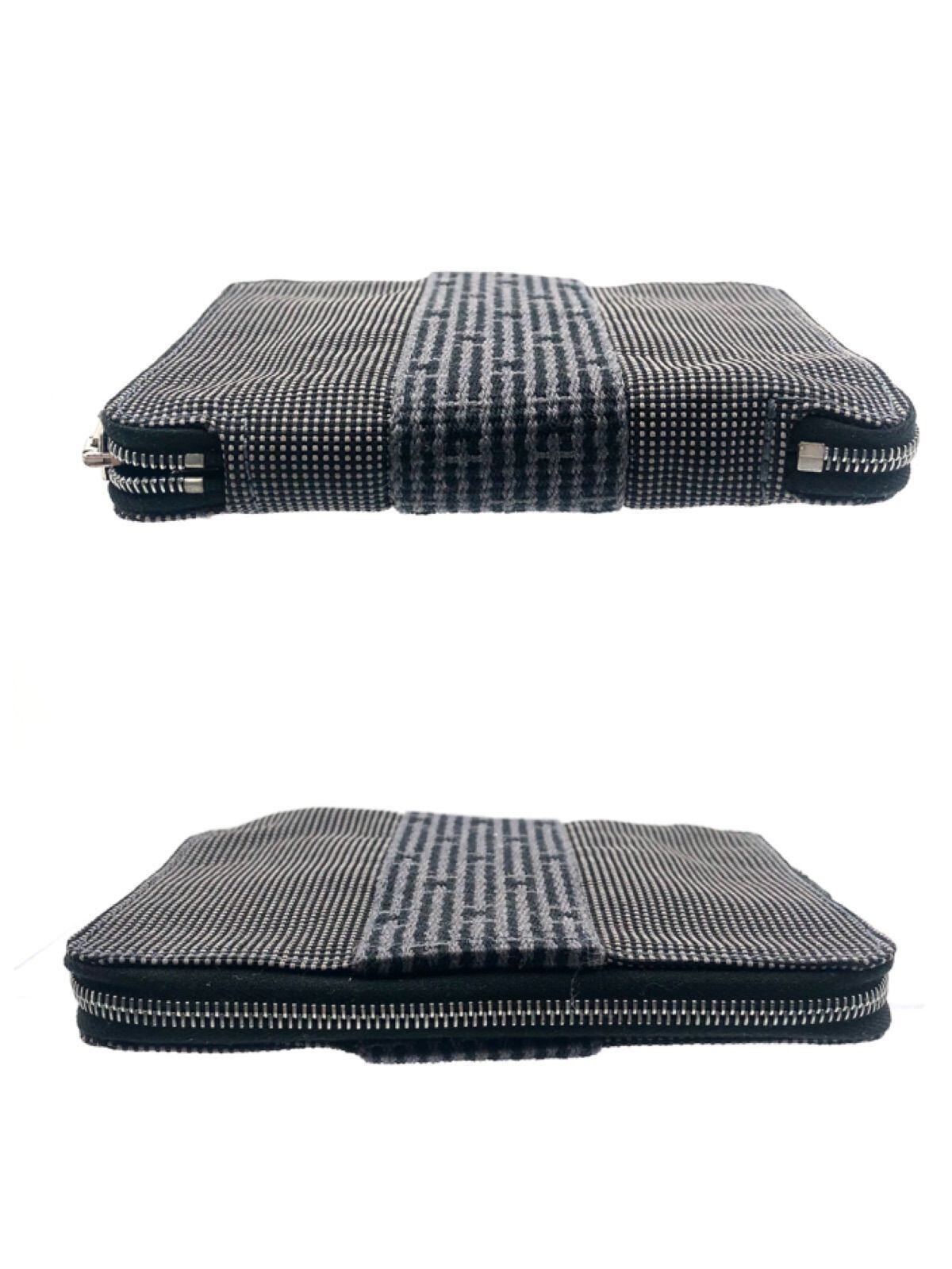 ■極美品■希少■HERMES エルメス エールライン アジェンダ 手帳カバー キャンバス グレー シルバー金具 ジップアラウンド コンパクト フランス製