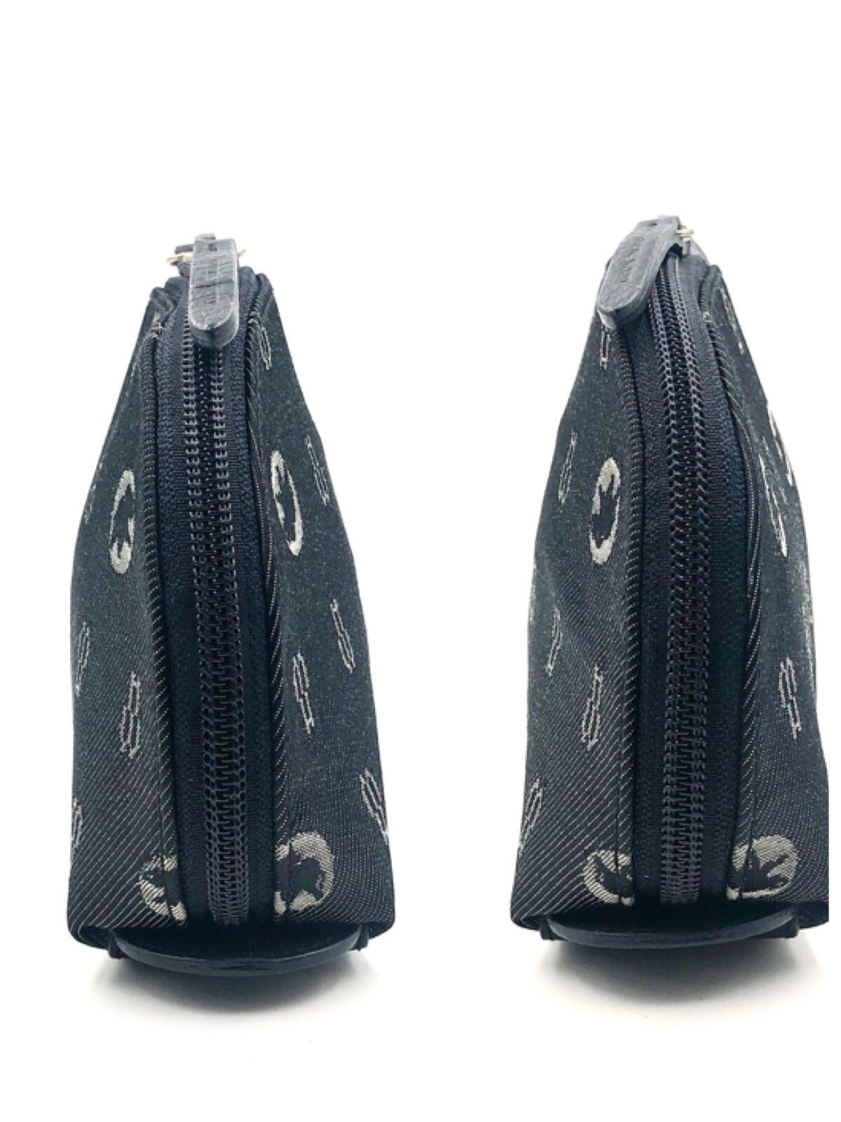 ■未使用同然■Hunting World ハンティングワールド ドーム型ポーチ ロゴ総柄 グレー キャンバス×レザー イタリア製 タグ、刻印あり