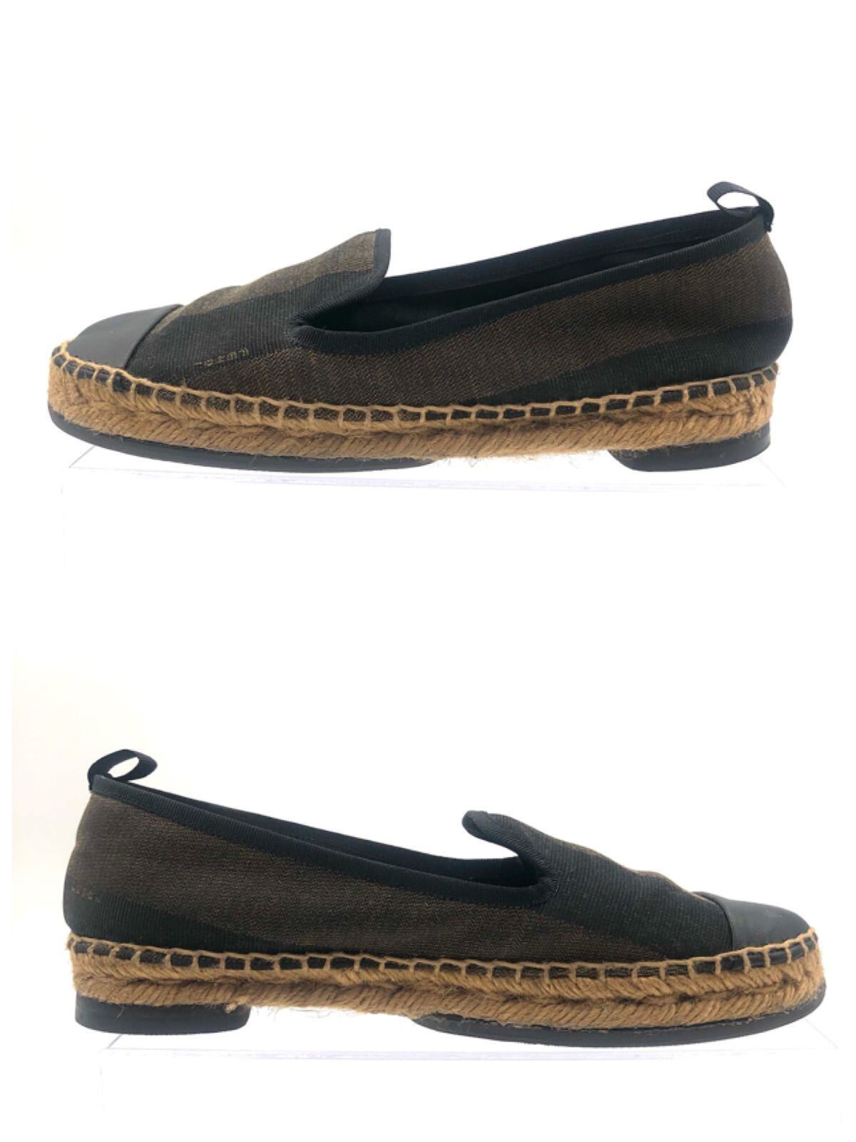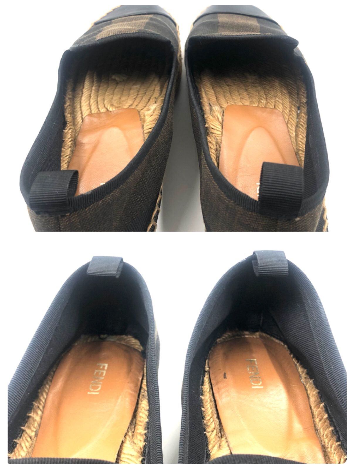 ■美品■FENDI フェンディ ペカン エスパドリーユ スリッポン デッキシューズ キャンバス×レザー×ジュート グレー系×ブラウン系 サイズ21~21.5cm レディース