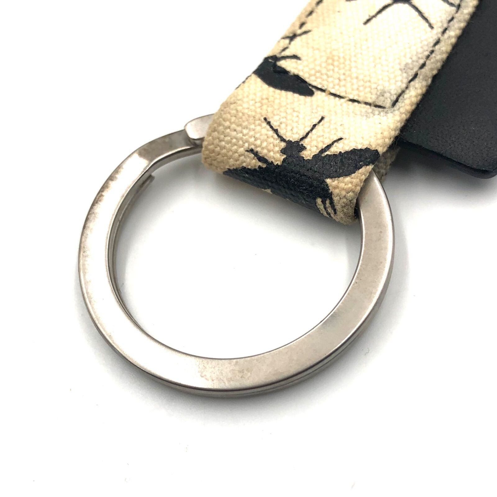■希少■Dior HOMME ディオールオム ビー キーホルダー キーリング チャーム キャンバス アイボリー×ブラック メンズ