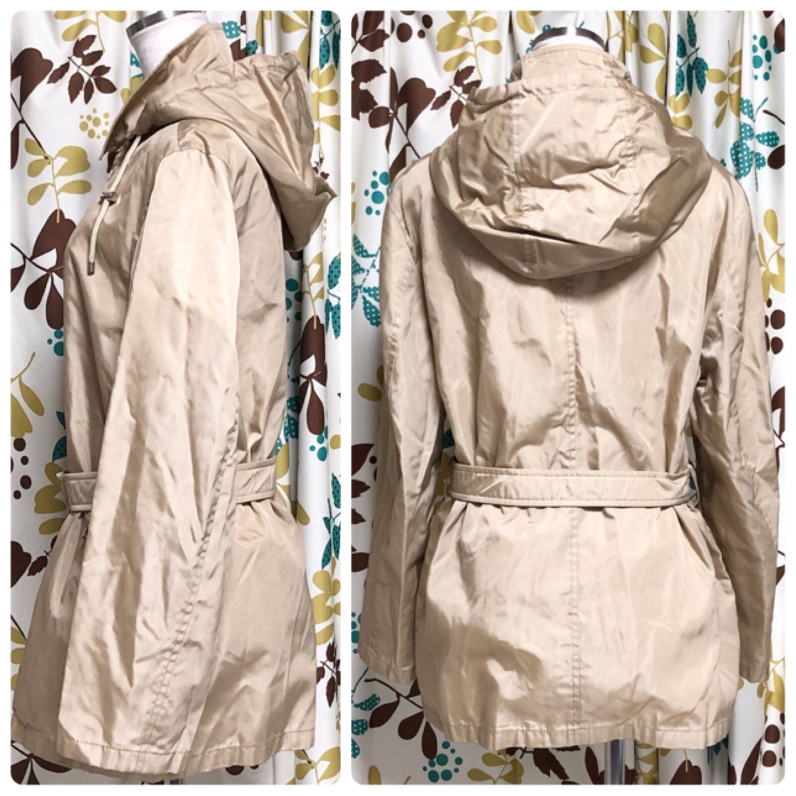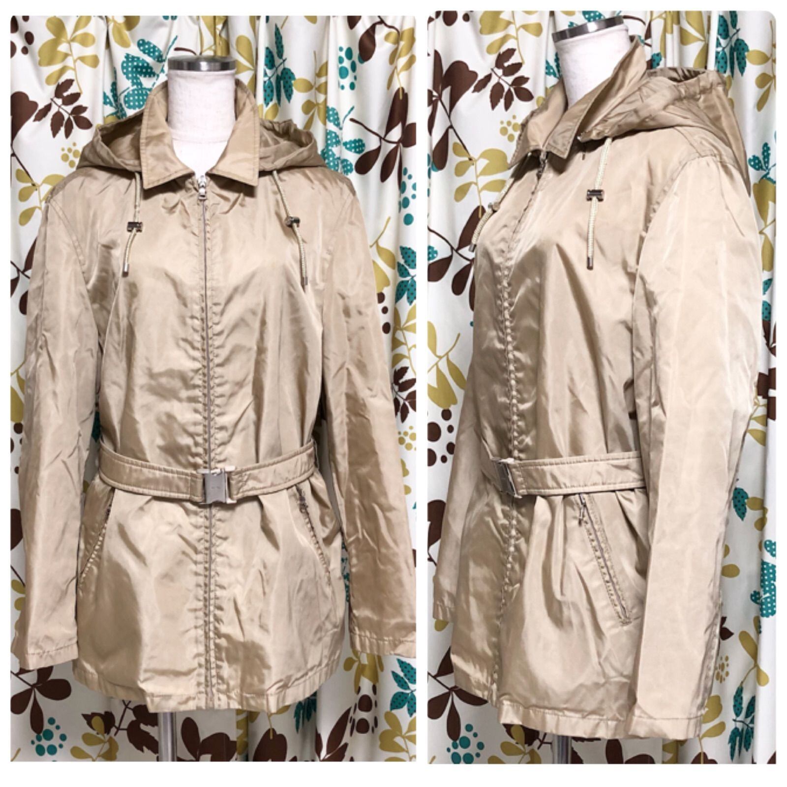 PRADA プラダ ナイロンショートコート スプリングコート マウンテンパーカー フーディ フード ベルト付き size42(L) イタリア製 ベージュ レディース 春秋冬