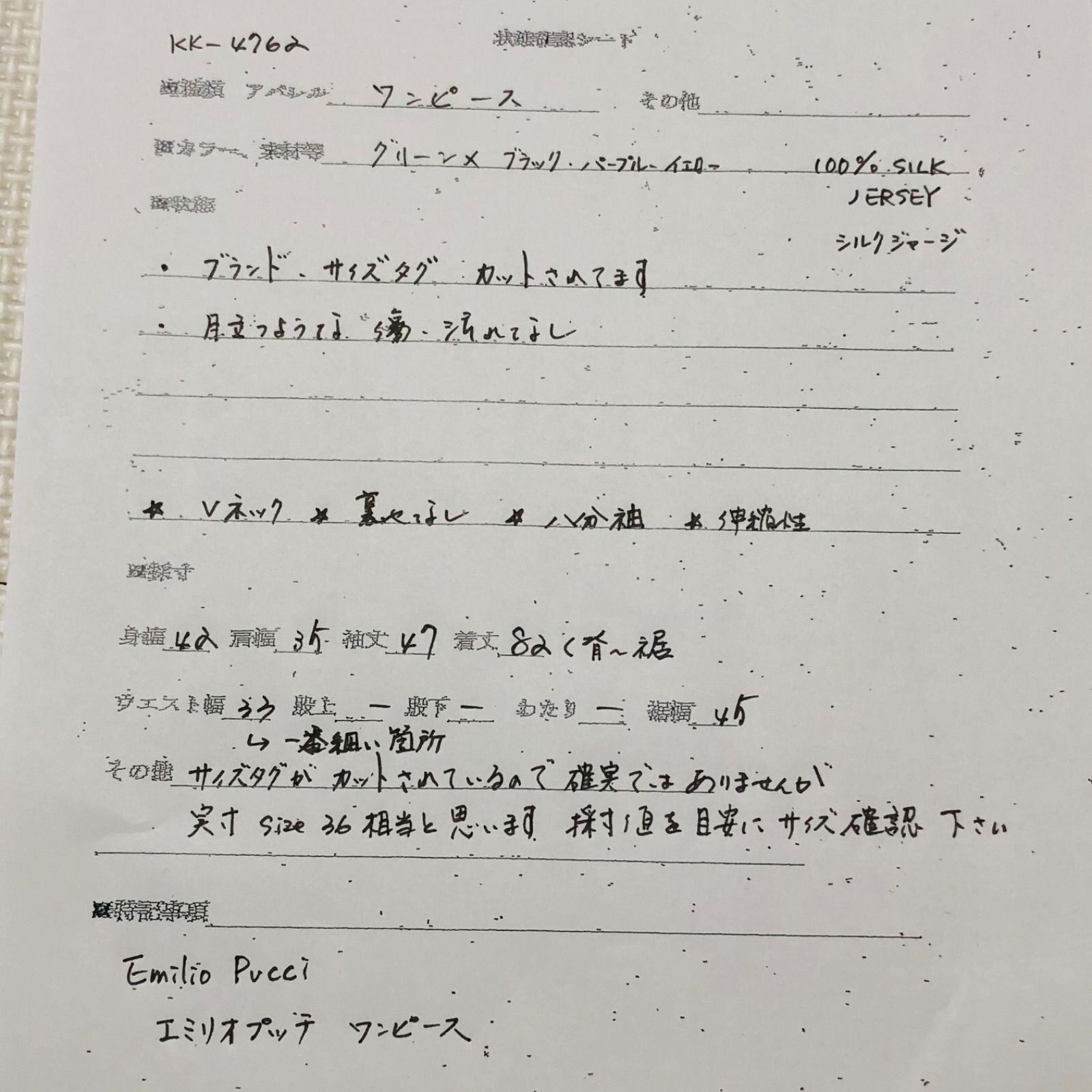 ■美品■EMILIO PUCCI エミリオプッチ 八分袖ワンピース 花柄 総柄 size36相当(S) イタリア製 グリーン系マルチカラー レディース シルク100% ストレッチ素材