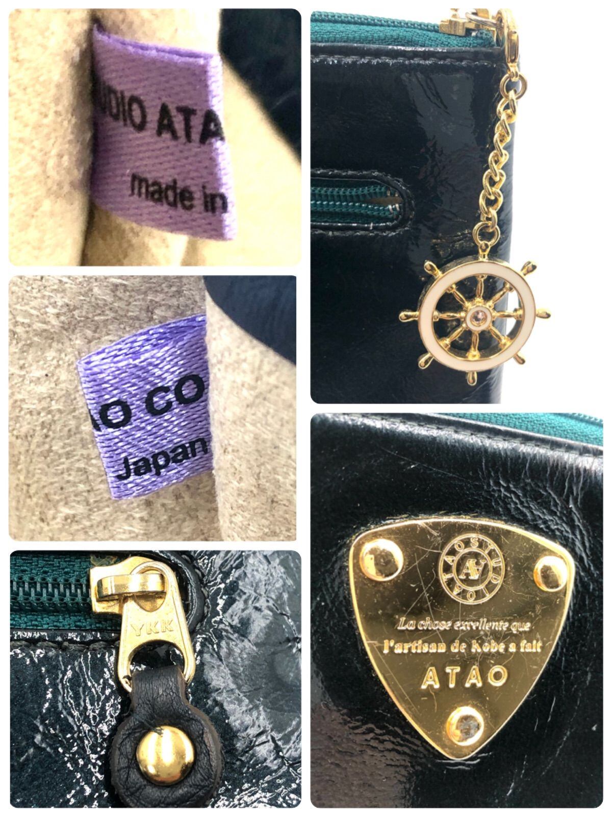 ATAO アタオ リモパール 舵チャーム L型ウォレット ラウンドファスナー 長財布 エナメルレザー ダークブラウン ゴールド金具 日本製 タグあり