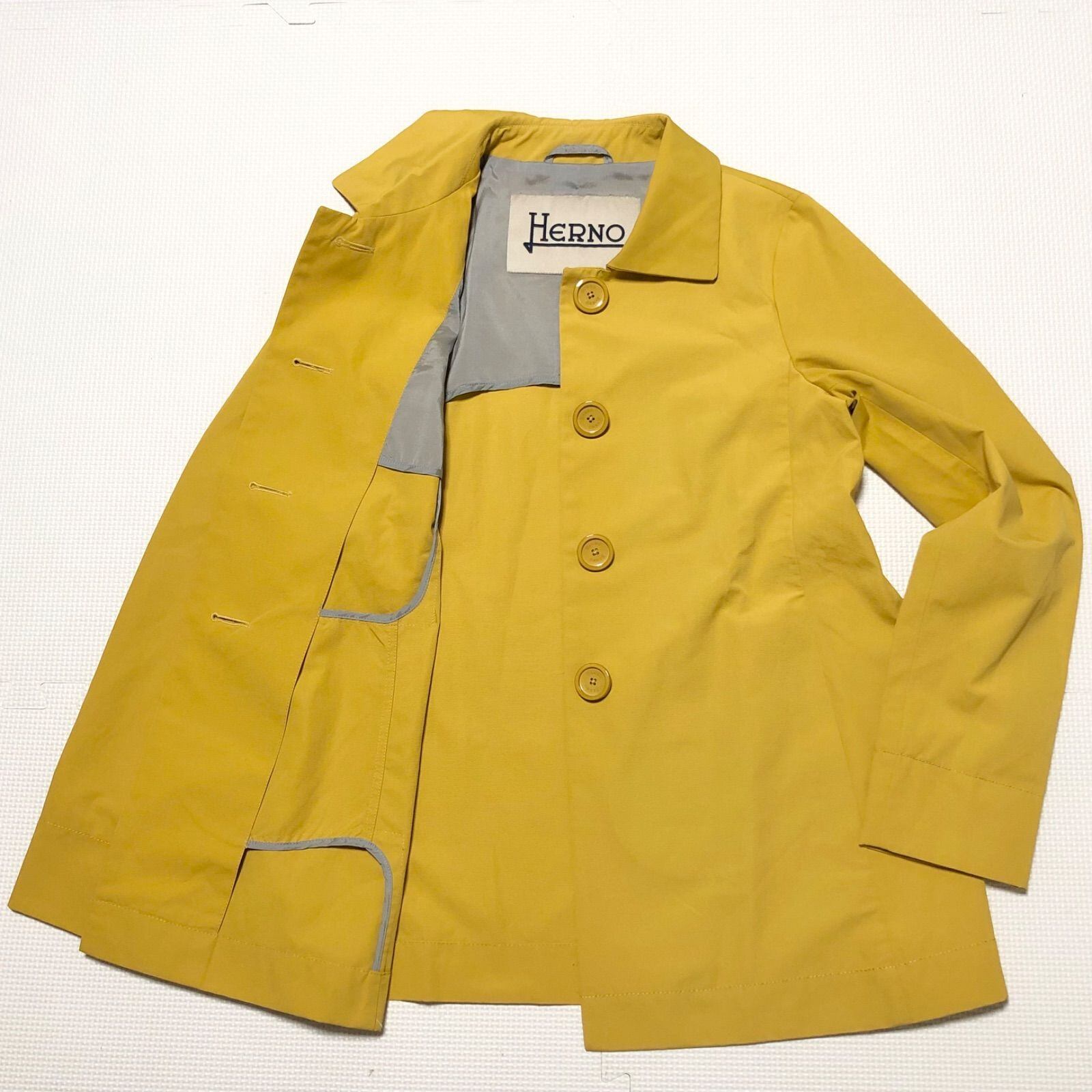 ■美品■HERNO ヘルノ シングルジャケット size40(L) 4つボタン イタリア製 マスタードイエロー レディース