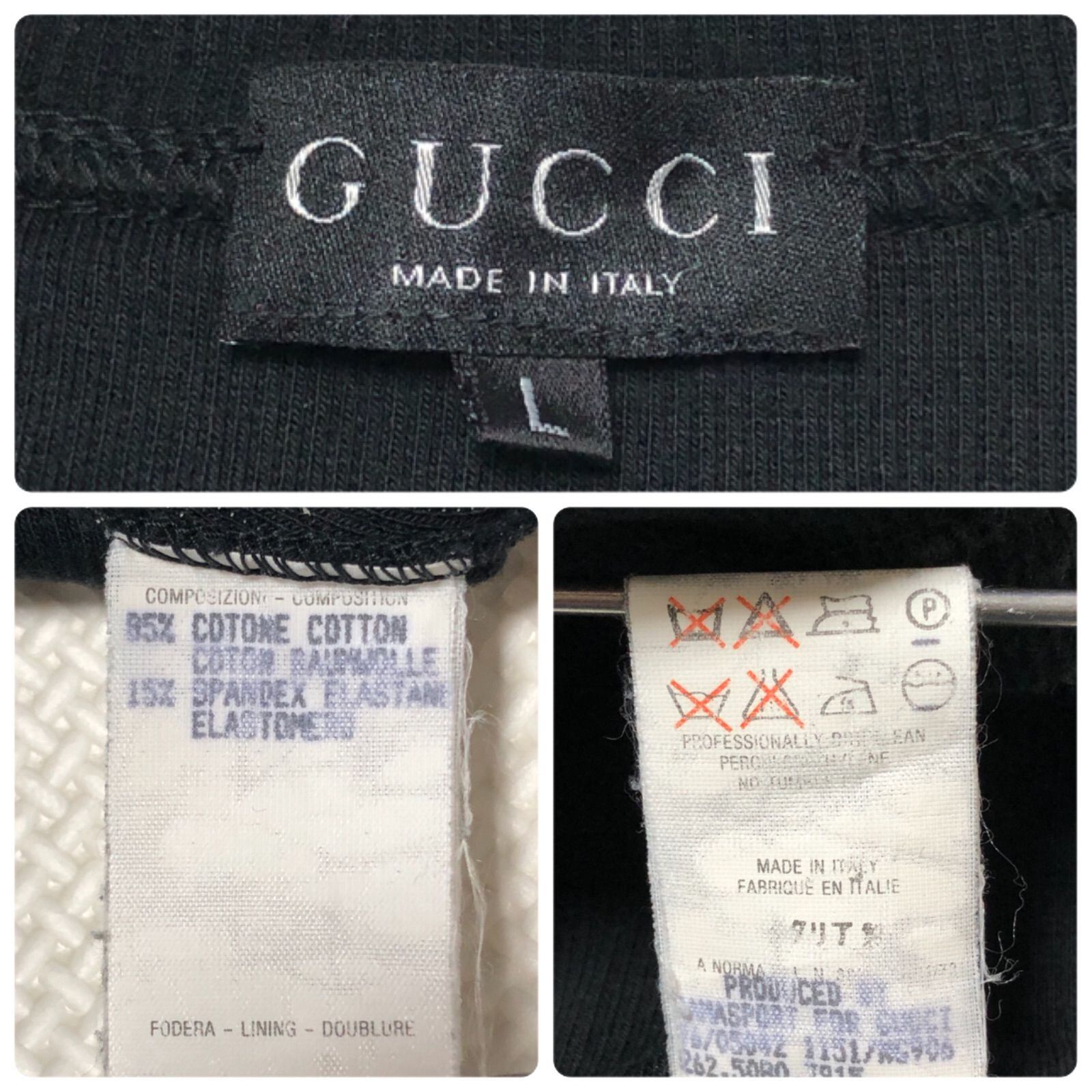 ■良品■GUCCI グッチ ロゴタグ リブTシャツ 長袖 丸首 sizeL ブラック イタリア製 レディース