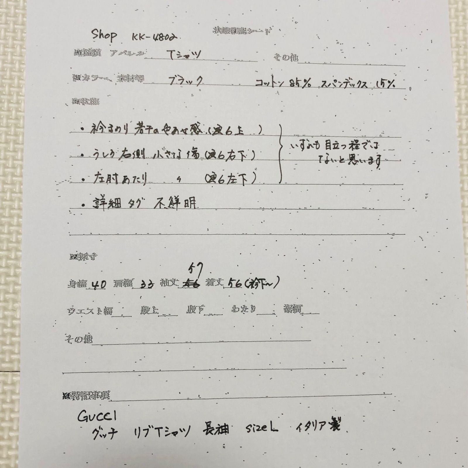 素人採寸のため誤差はご容赦ください