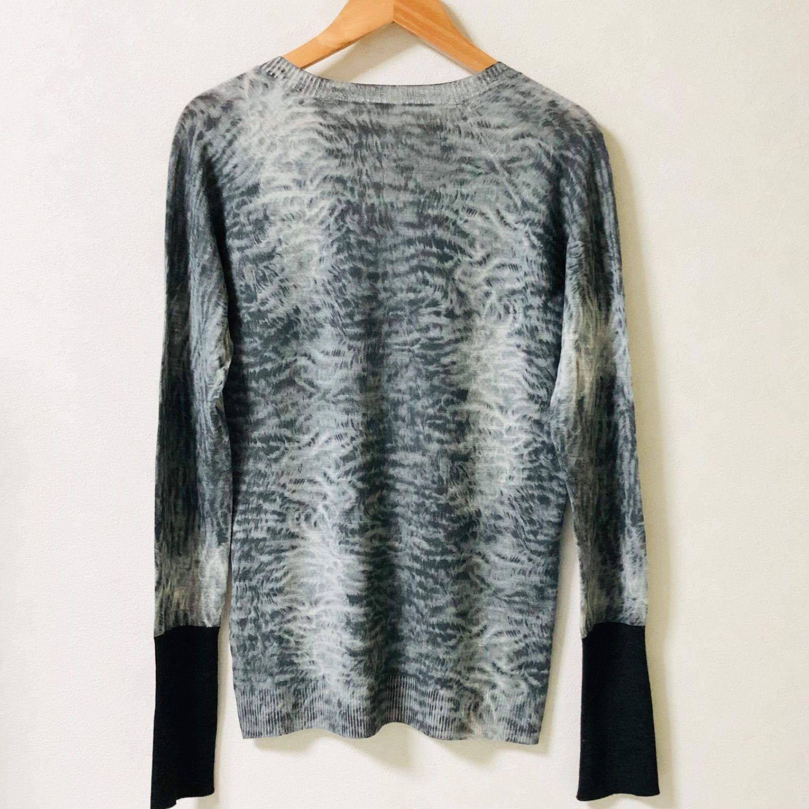 ■美品■希少■HERMES エルメス アニマル総柄 ウールニット サマーニット 薄手 Vネック ラグランスリーブ size38(M) イタリア製 グレー×ブラック レディース