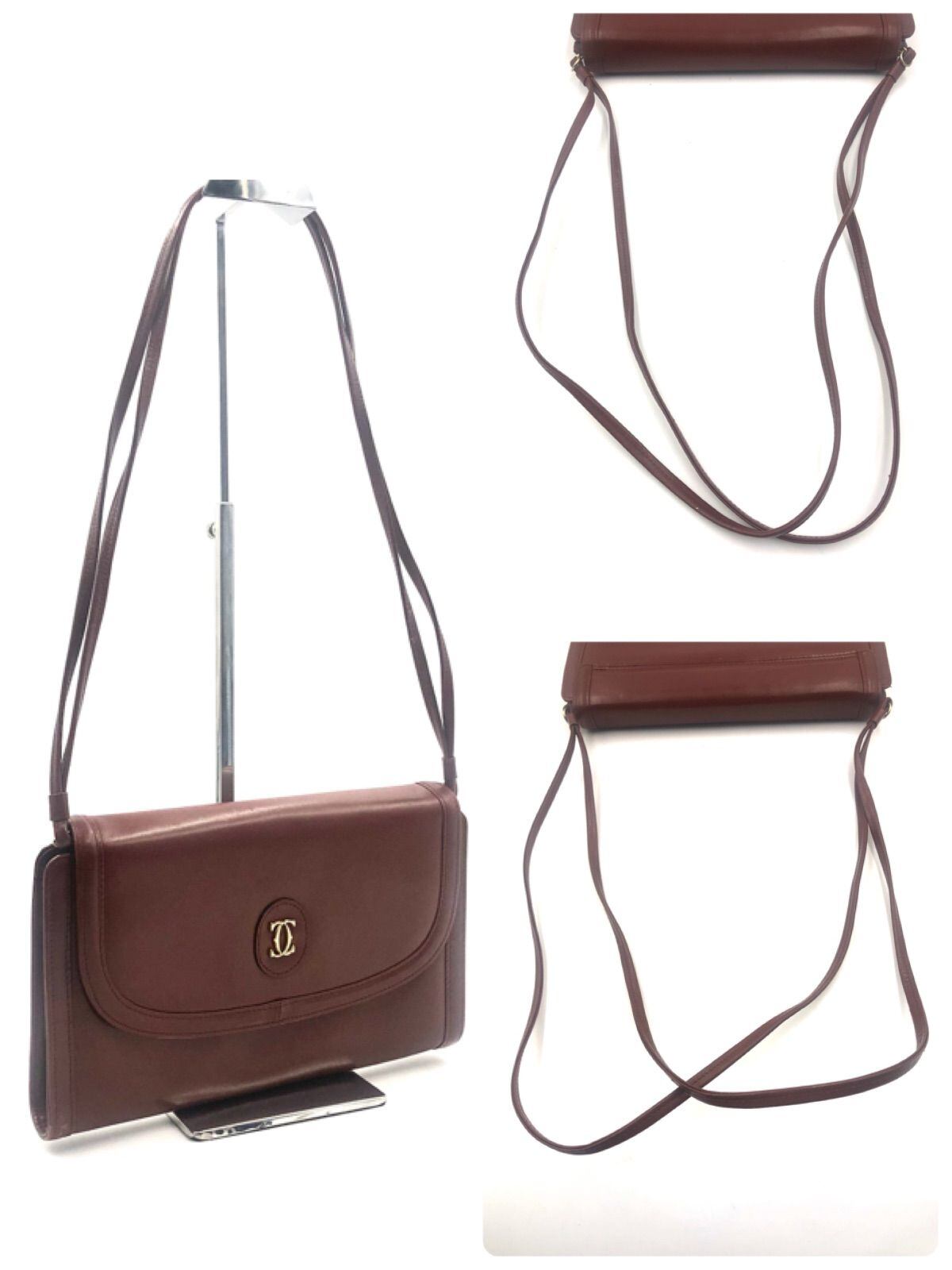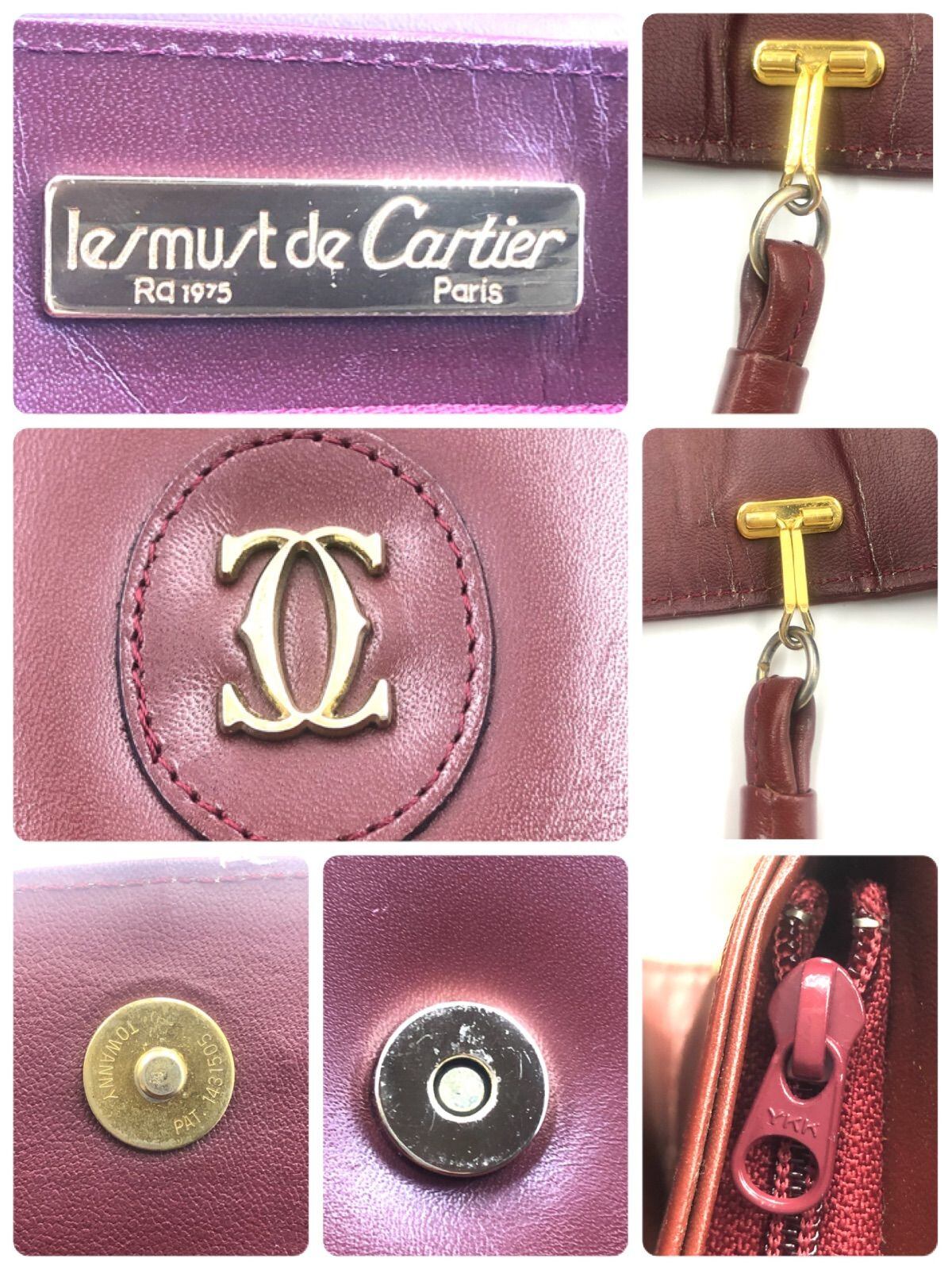 ■美品■Cartier カルティエ must de Cartier マストドゥカルティエ ショルダーバッグ ポシェット ロゴ金具 レザー 本革 ボルドー ゴールド金具 レディース