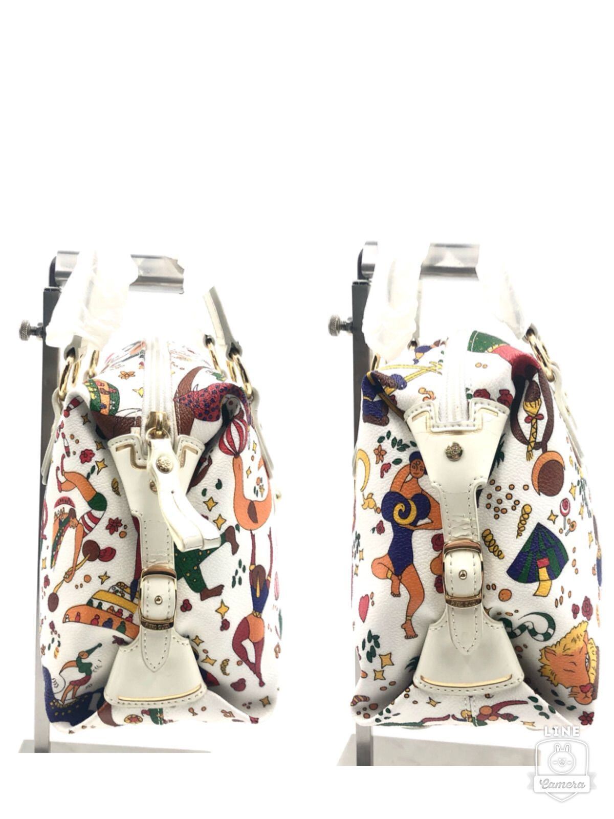 ■美品■PIERO GUIDI ピエログイディ マイクロボストンバッグ ハンドバック PVC×レザー ホワイト×マルチカラー サーカス総柄 保存袋付き レディース