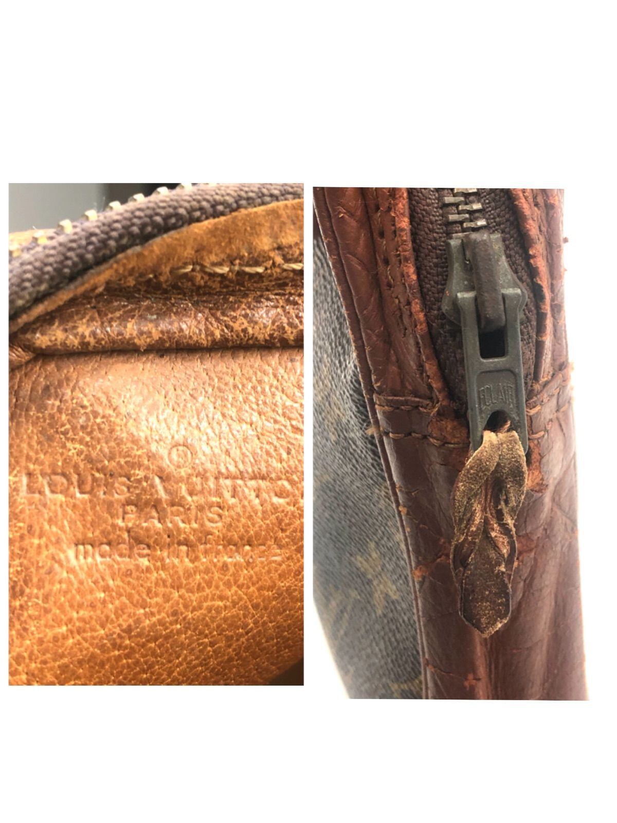 LOUIS VUITTON ルイヴィトン モノグラム ポシェットスポーツ クラッチバッグ セカンドバッグ PVC×レザー 豚革 フランス製 ECLAIR社ファスナー ブラウン