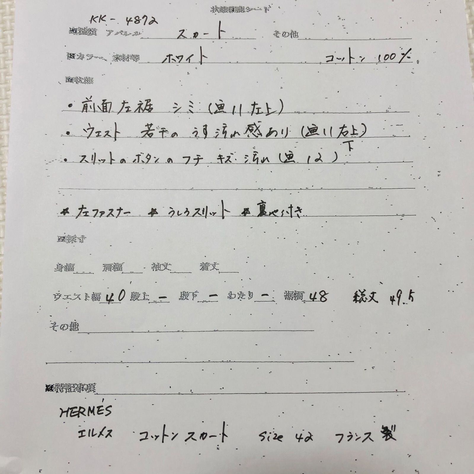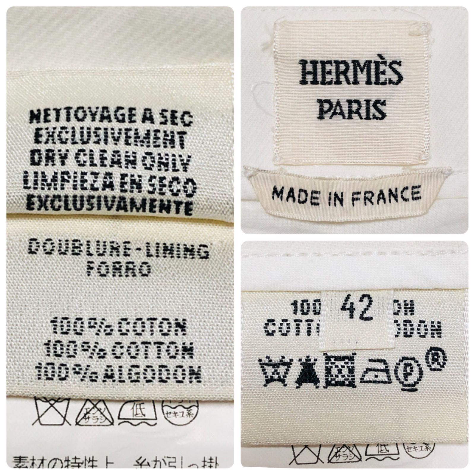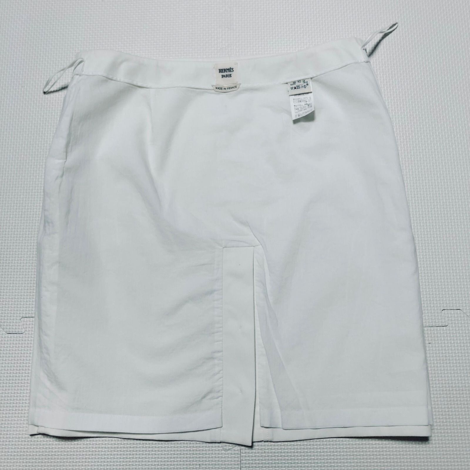 HERMES エルメス タイトスカート コットン size42(L) フランス製 ホワイト 裏地あり レディース