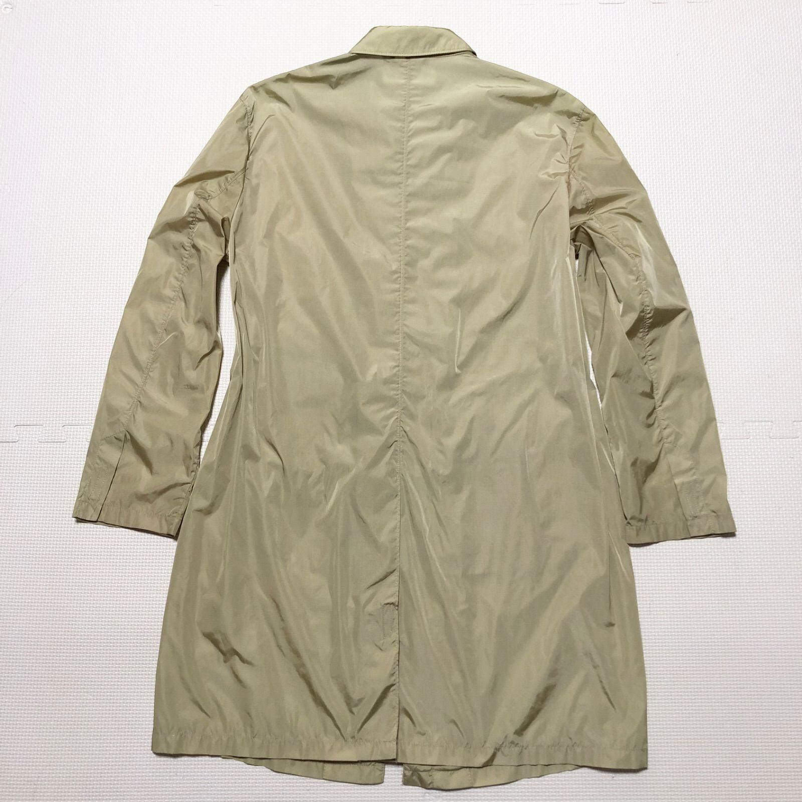 ■美品■希少■PRADA プラダ レインコート ナイロンコート スプリングコート size42(XL) 大きめ イタリア製 ベージュ系オリーブ ナイロン100% 開閉ファスナー+マジックテープ レディース