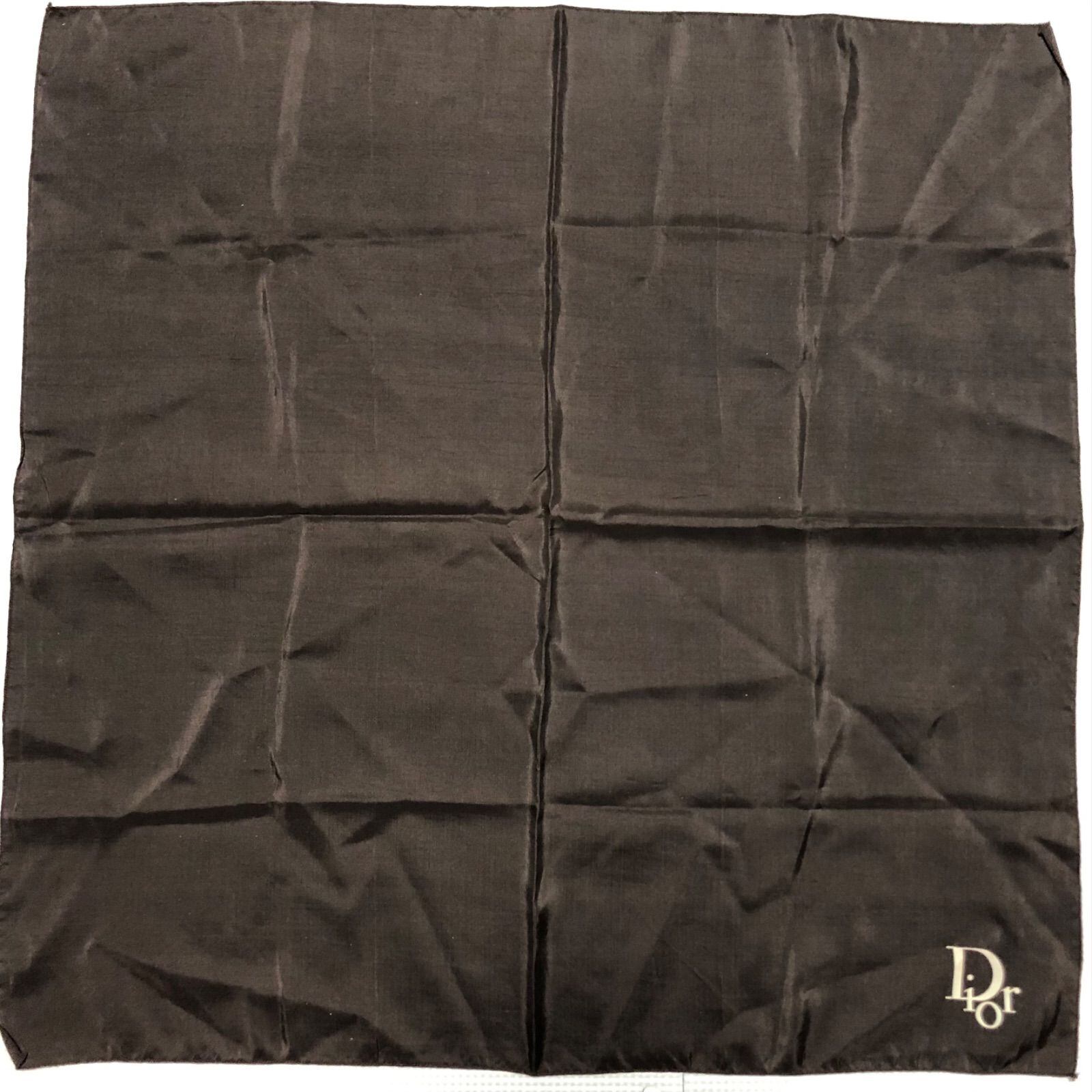 ■美品■Christian Dior クリスチャンディオール ビッグロゴ スカーフ 56×56cm シルク100% フランス製 ダークブラウン レディース