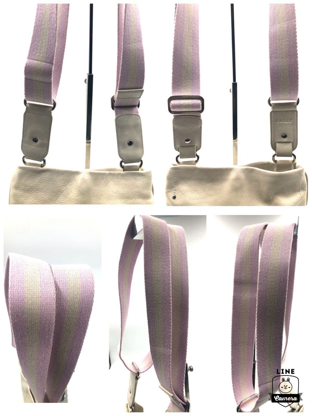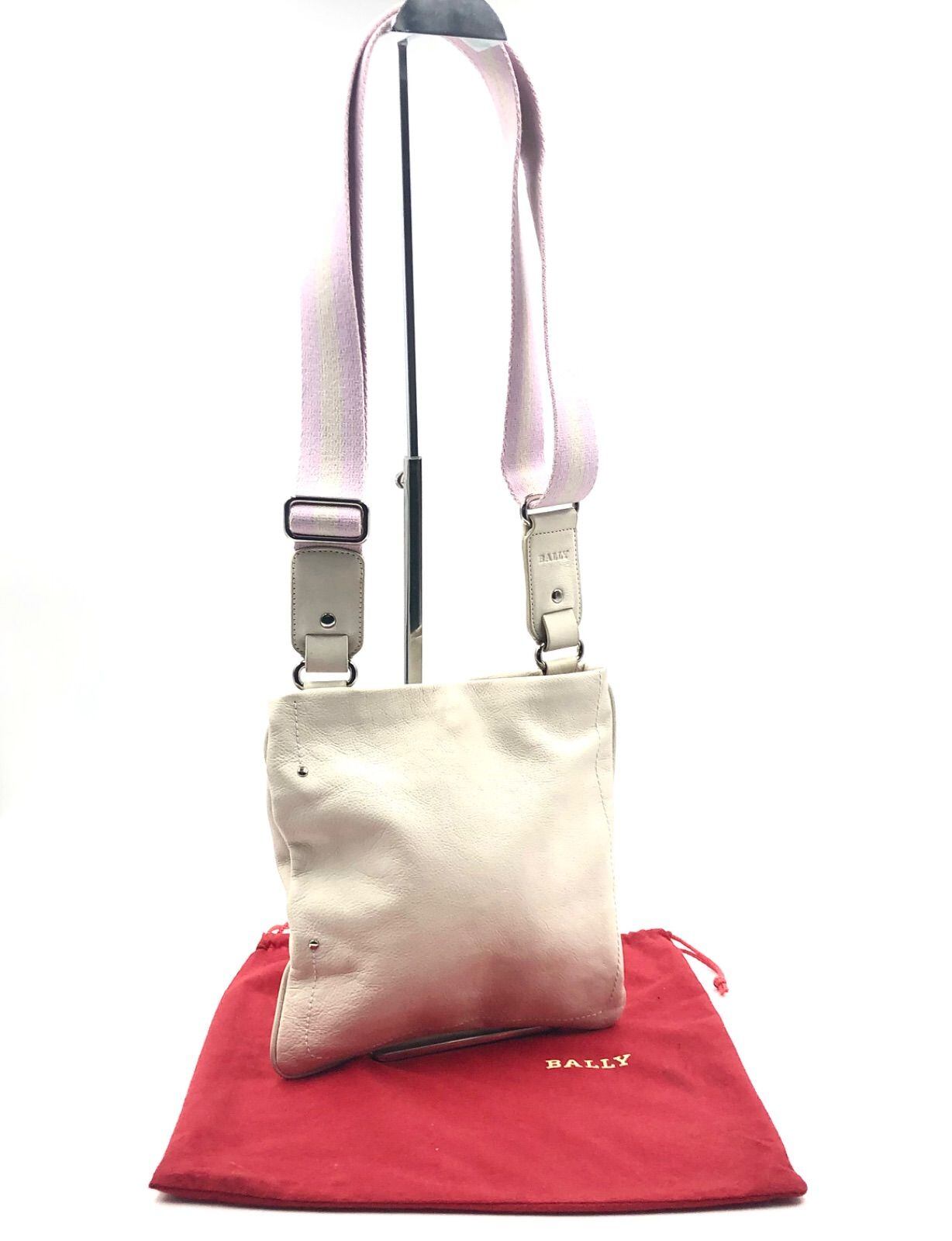 ■美品■BALLY バリー サコッシュ ショルダーバッグ ホワイト×ピンク シルバー金具 ストライプ 斜めがけ クロスボディ スイス製 保存袋付き
