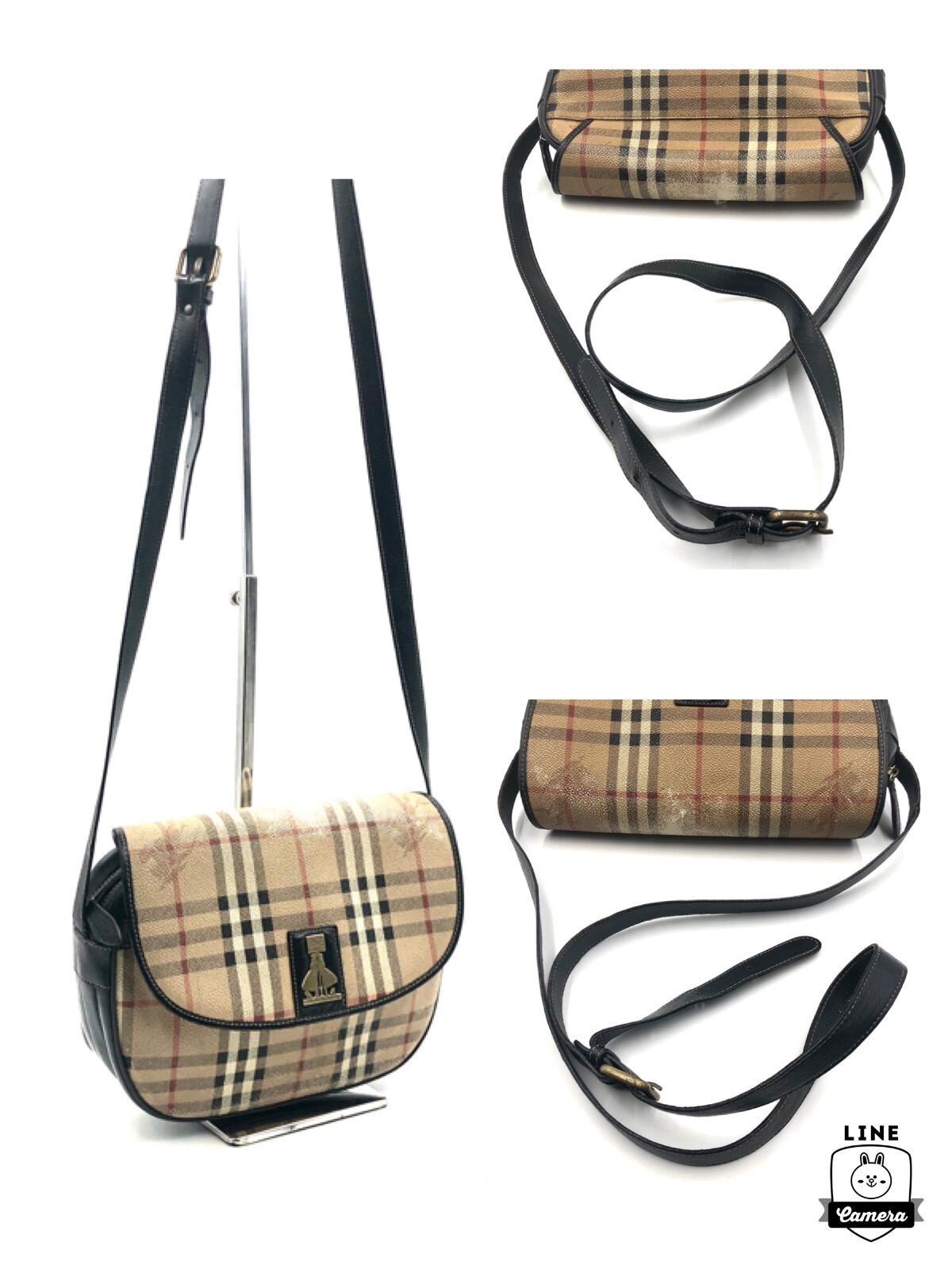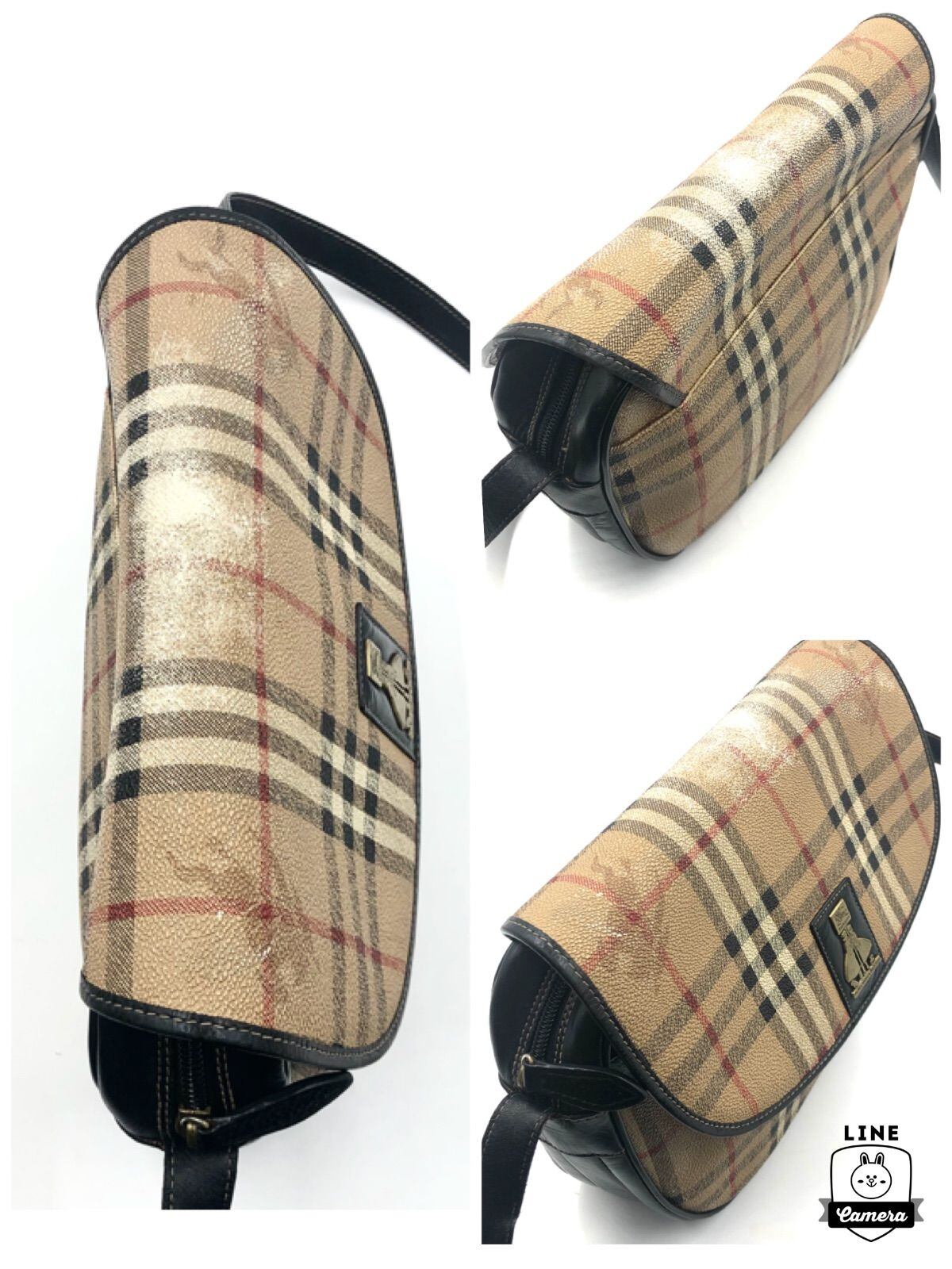 ■希少レアモデル■Burberrys バーバリー shelter under a burberrys ショルダーバッグ ノバチェック+シャドーホース コートを着た男女 イタリア製 ベージュ ゴールド金具 PVC×レザー 斜めがけ クロスボディ