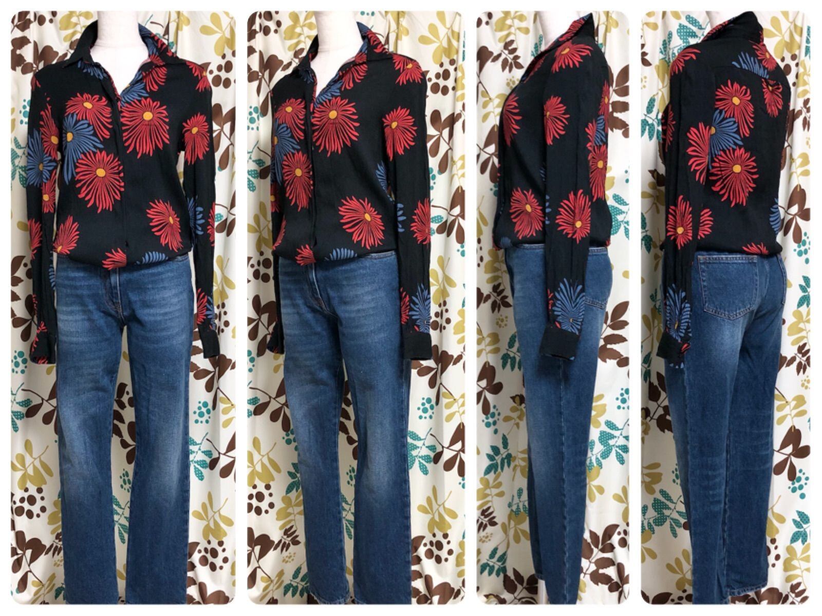 花柄ブラウス+デニムパンツの切り替えデザイン