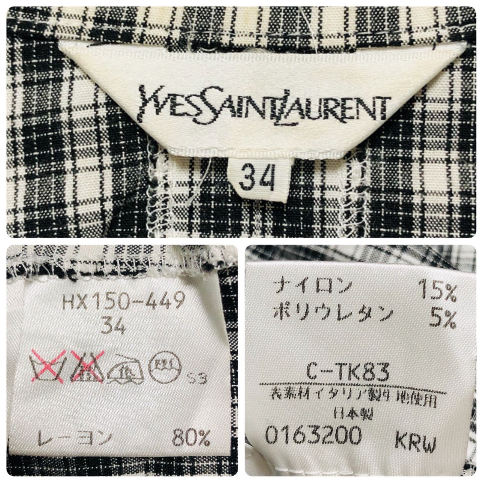 ■極美品■Yves saint Laurent イヴサンローラン タータンチェック総柄 半袖シャツワンピース ハーフボタン ブラック×ホワイト size34 日本製 裏地なし 春夏 レディース
