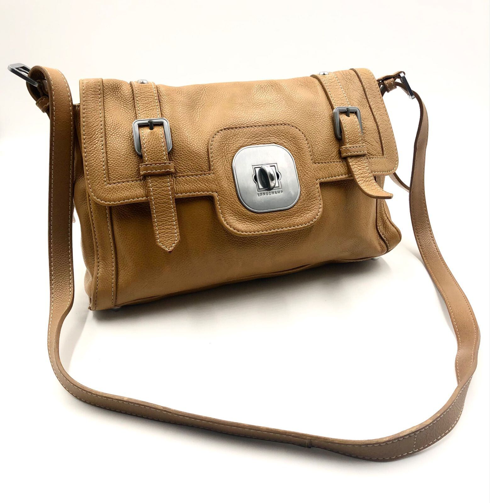■極美品■LONGCHAMP ロンシャン ギャツビー ショルダーバッグ メッセンジャーバッグ ターンロック レザー シボ革 本革 斜めがけ クロスボディ フランス製 ライトブラウン シルバー金具 レディース